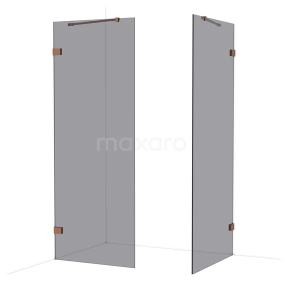Diamond Walk-in shower | 90x80 cm Shiny copper Smoke glass 2 fixed walls
