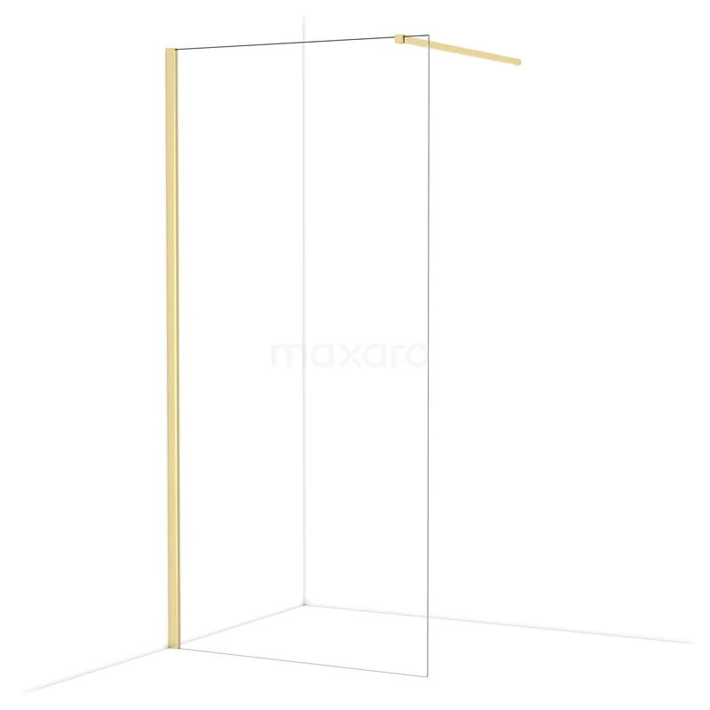 Diamond Walk-in shower | 100 cm Shiny light gold Clear glass Fixed wall