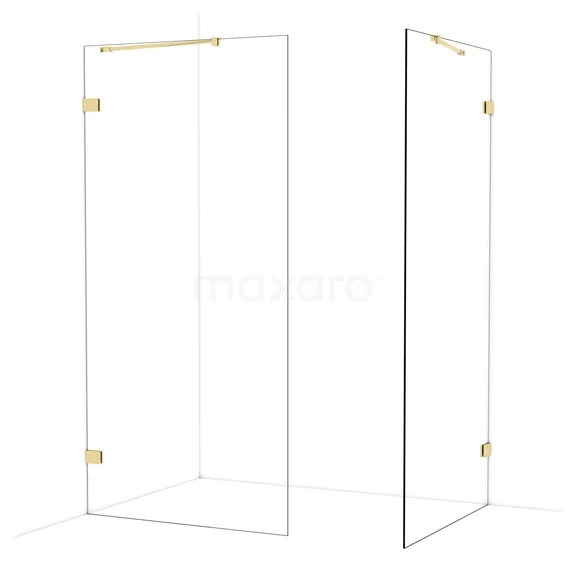 Diamond Walk-in shower | 100x100 cm Shiny light gold Clear glass 2 fixed walls