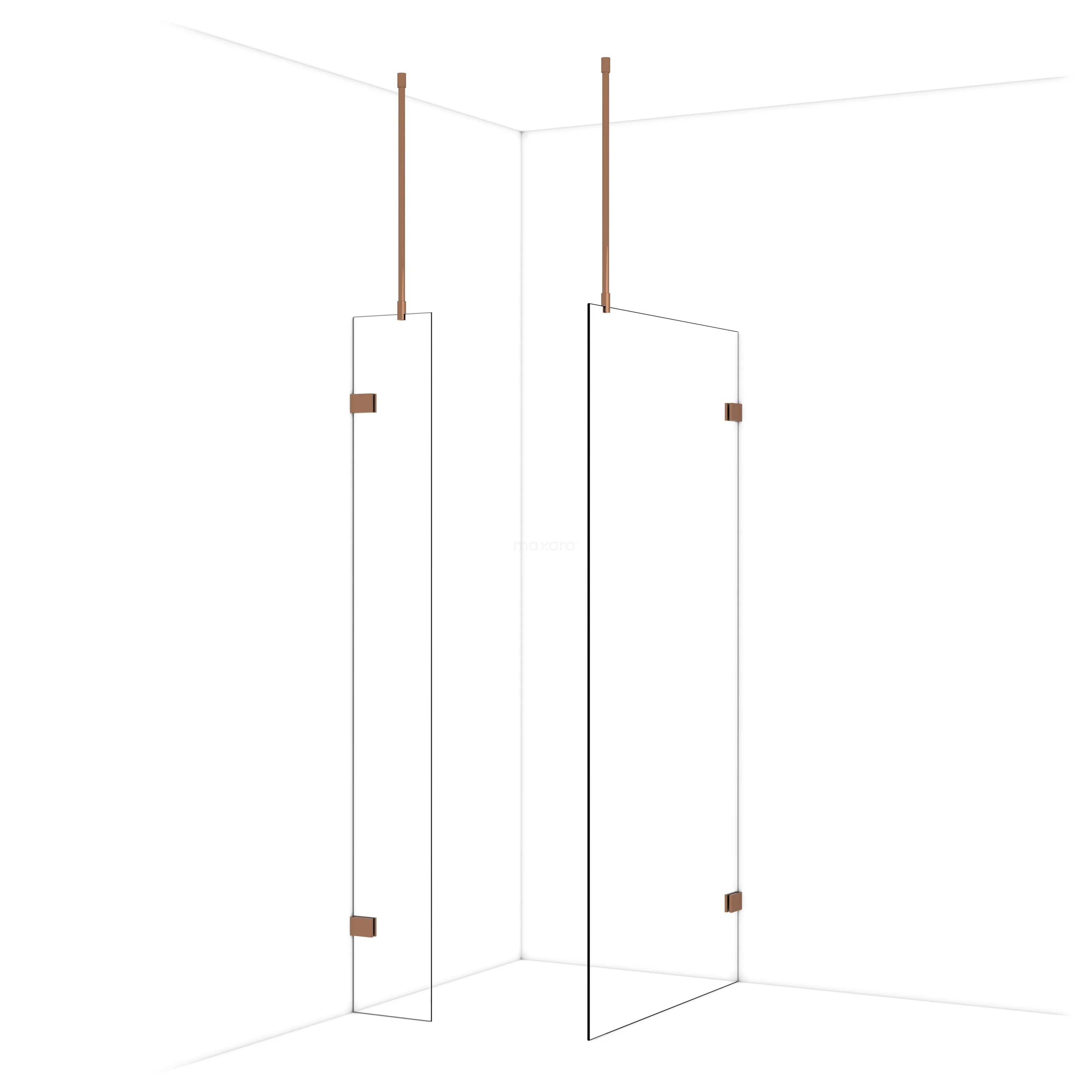 Diamond Walk-in shower | 100x30 cm Shiny copper Clear glass 2 fixed walls