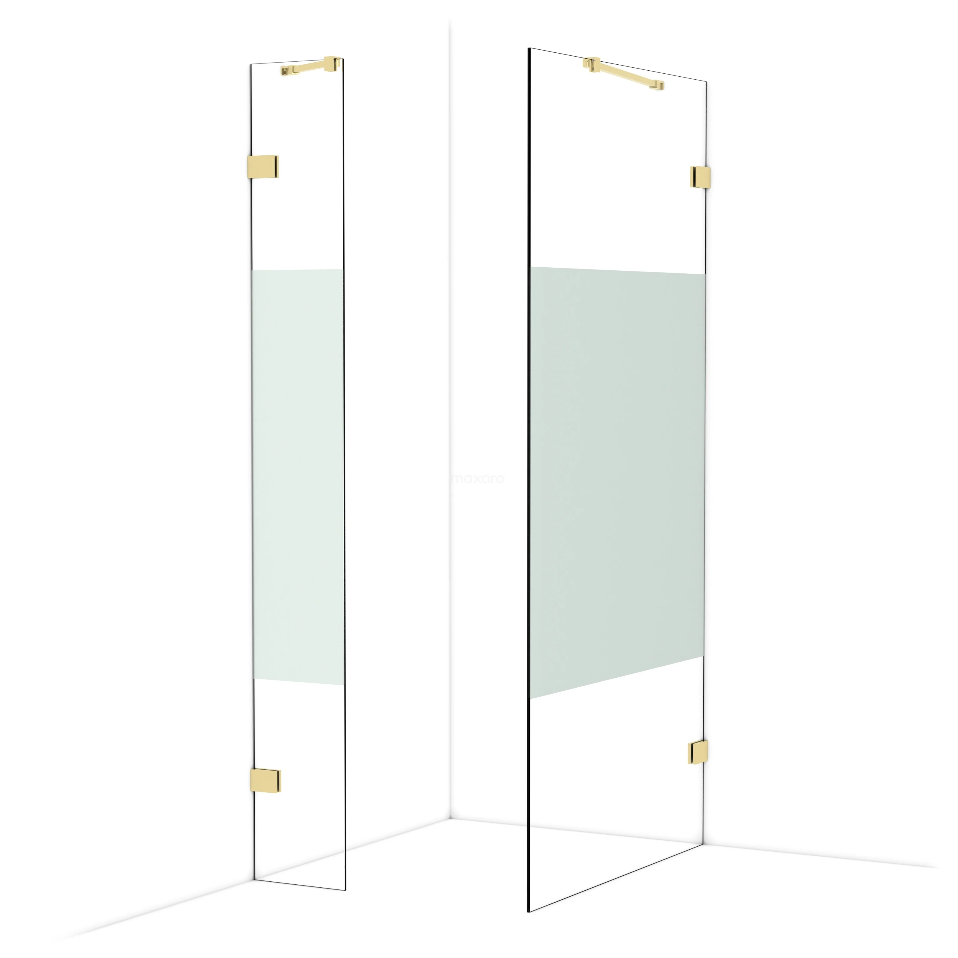 Diamond Walk-in shower | 100x30 cm Shiny light gold Clear with matt strip 2 fixed walls