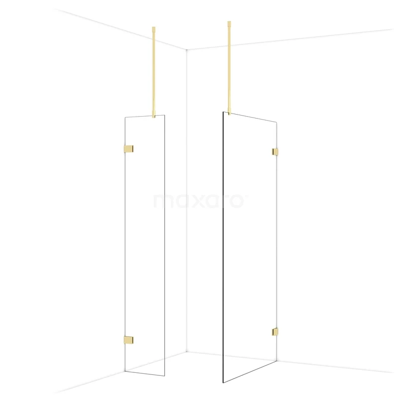 Diamond Walk-in shower | 100x40 cm Shiny light gold Clear glass 2 fixed walls