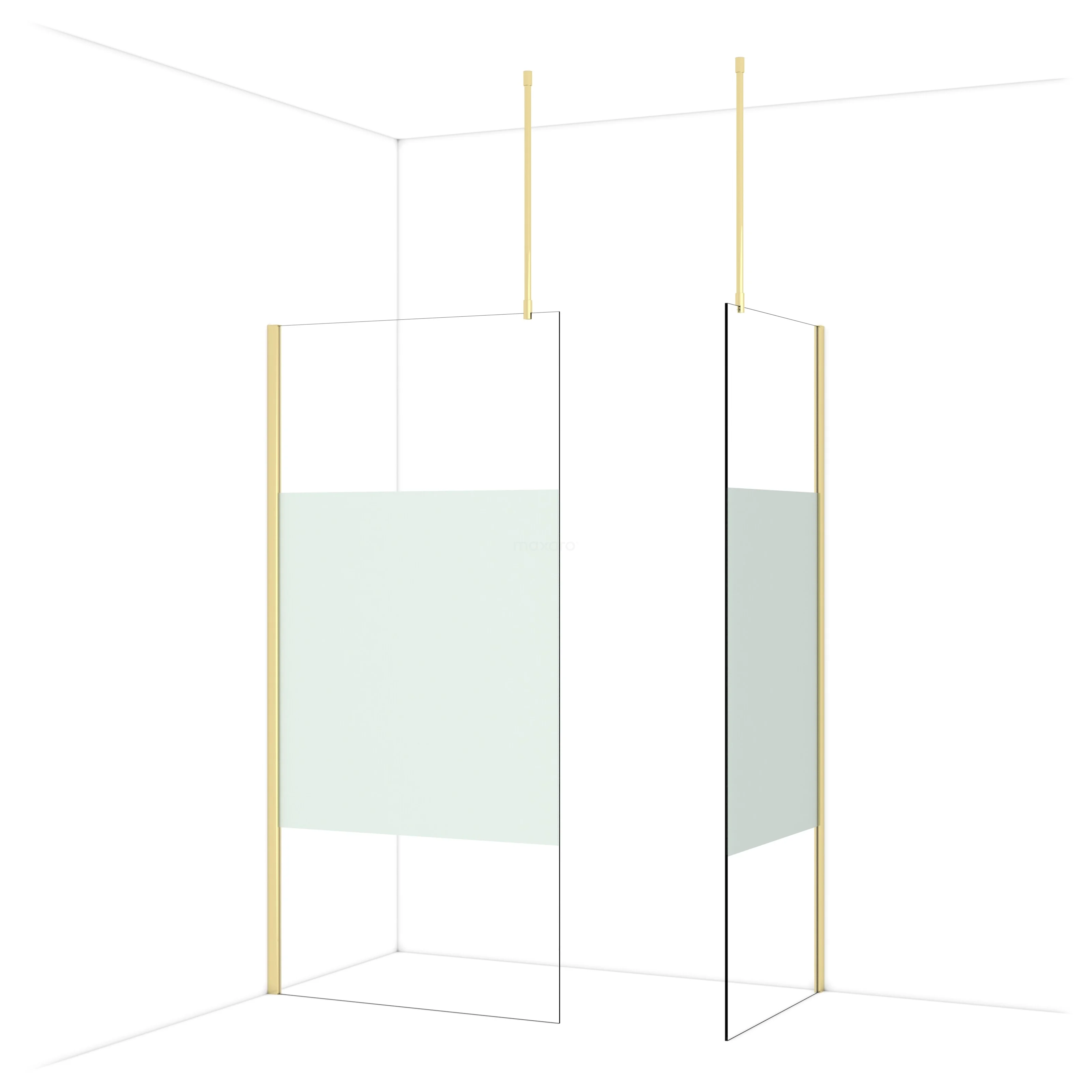 In de stijlvolle Diamond-inloopdouche met een afmeting van 100x80 cm geniet je dagelijks van heerlijke douchesessies. Dit exemplaar heeft een verfijnd en luxe design van glanzend lichtgoud en is voorzien van helder glas met matte strook voor meer privacy.