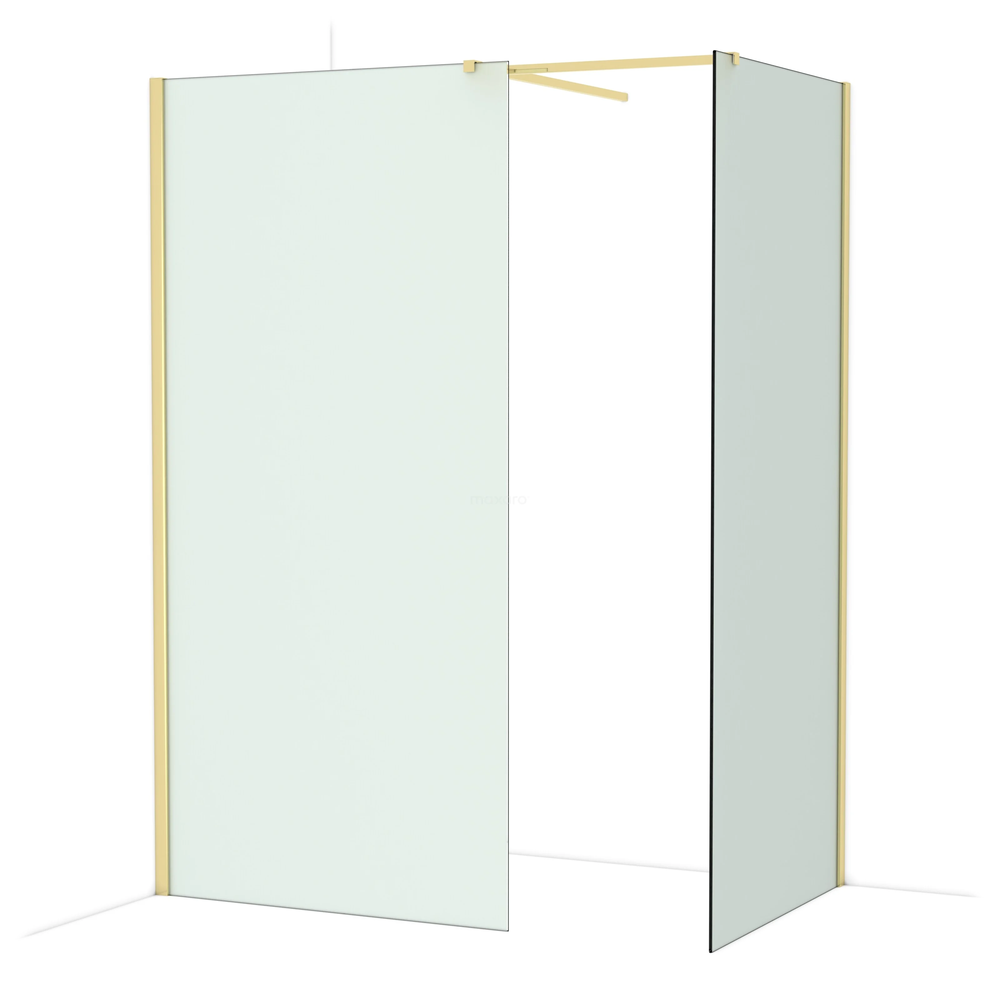 Diamond Walk-in shower | 100x90 cm Glossy light gold Frosted glass 2 fixed walls