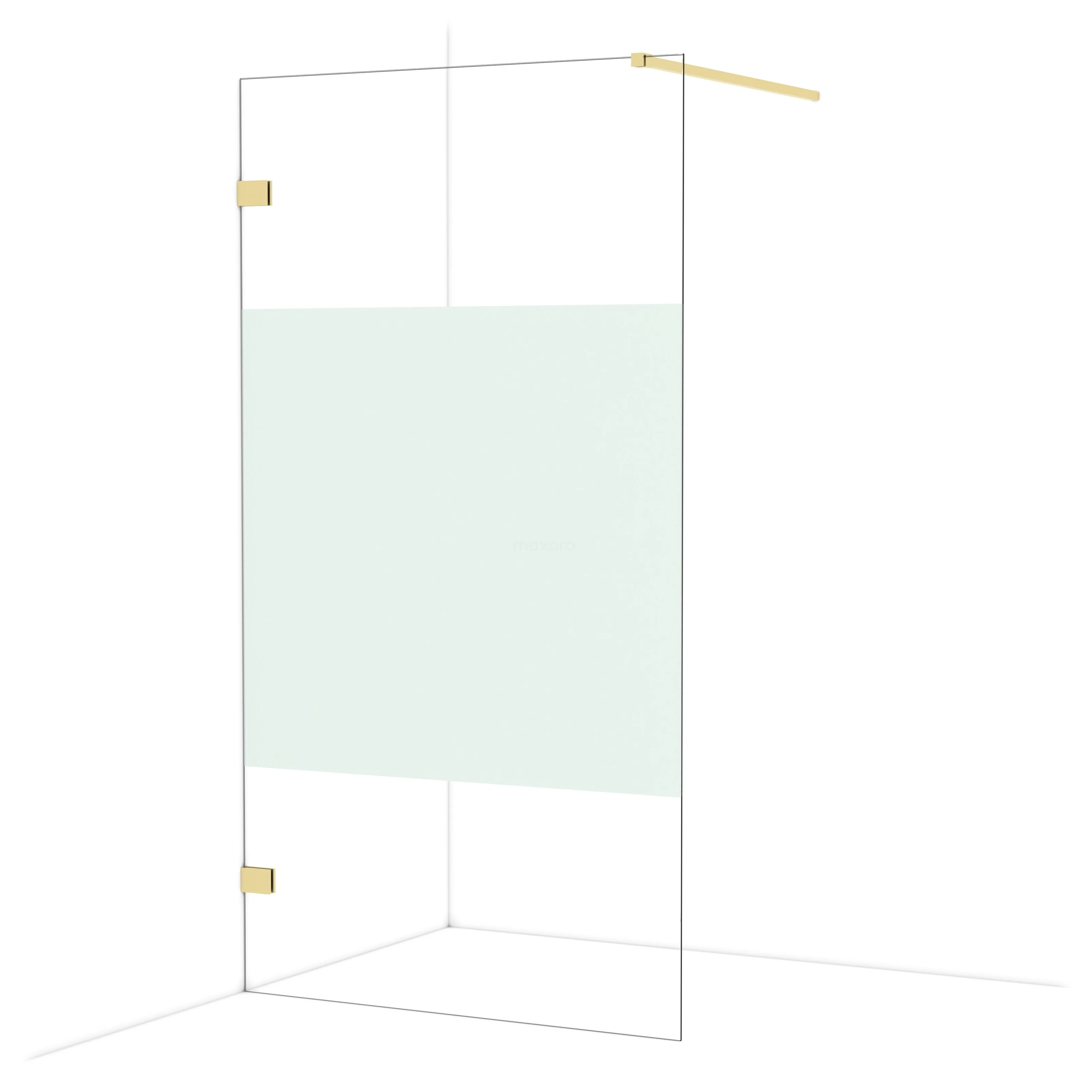 In the stylish Diamond walk-in shower measuring 110 cm, you can enjoy delightful shower sessions every day. This model features a refined and luxurious design in glossy light gold and is equipped with clear glass with a matte strip for added privacy.