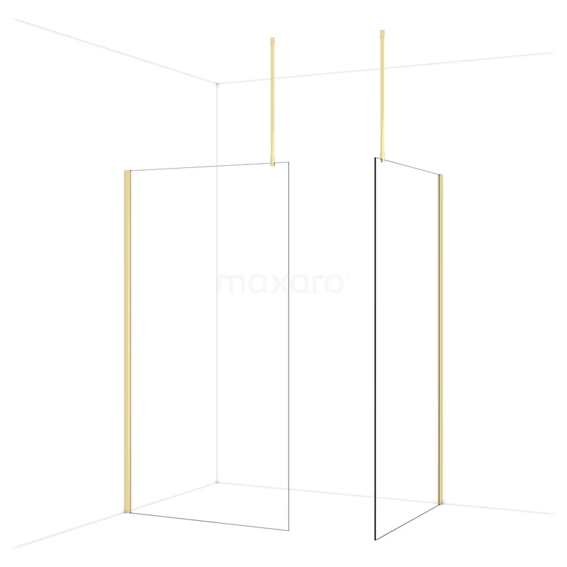 Diamond Walk-in shower | 110x110 cm Shiny light gold Clear glass 2 fixed walls