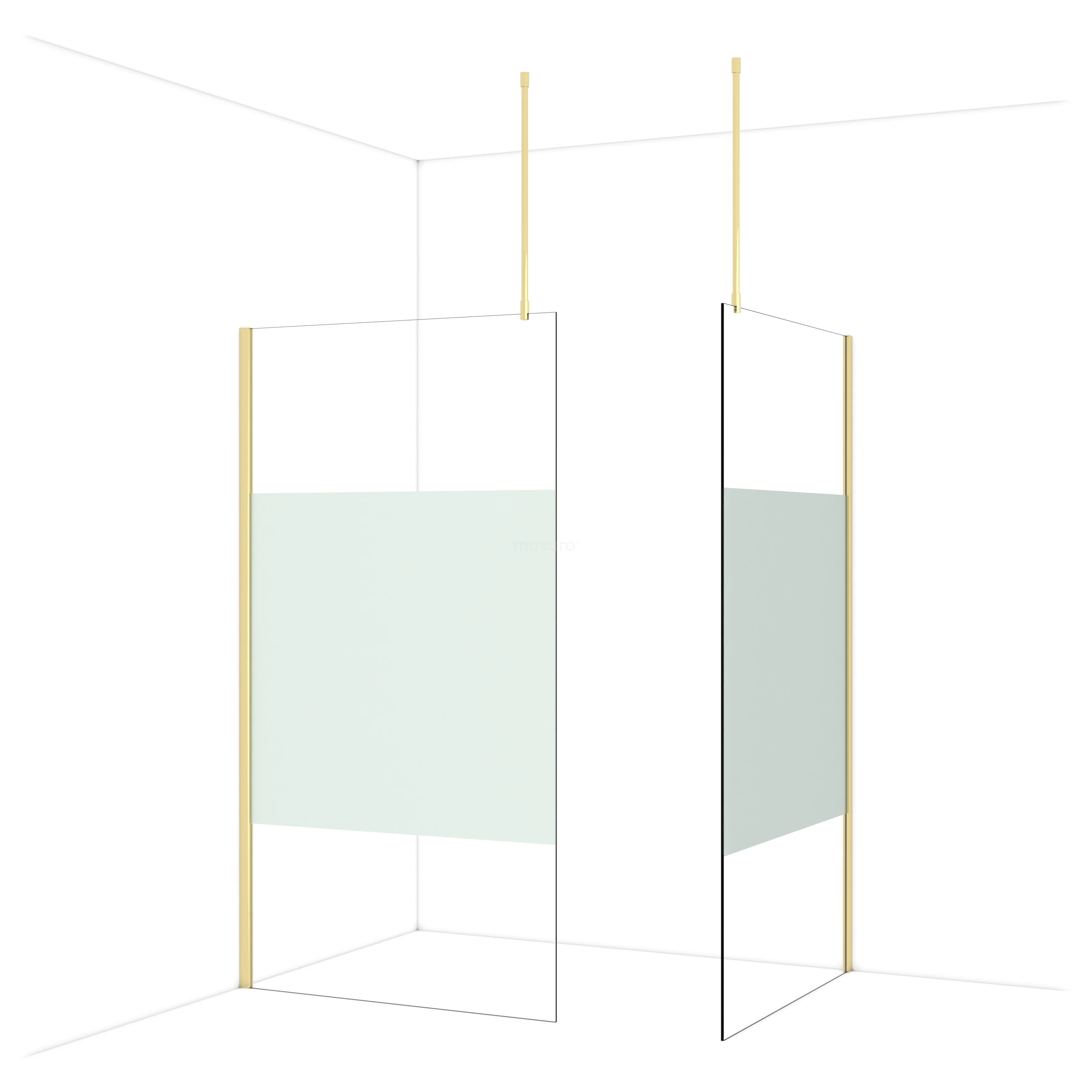 Diamond Walk-in shower | 110x110 cm Shiny light gold Clear with matt strip 2 fixed walls