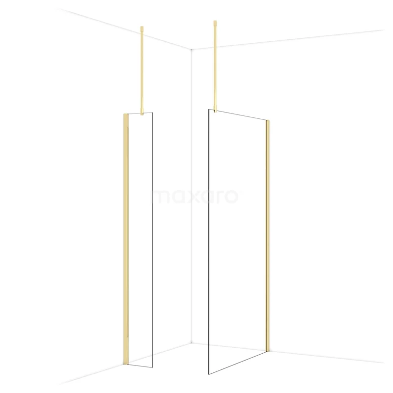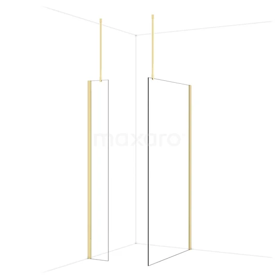 Diamond Walk-in shower | 110x30 cm Shiny light gold Clear glass 2 fixed walls