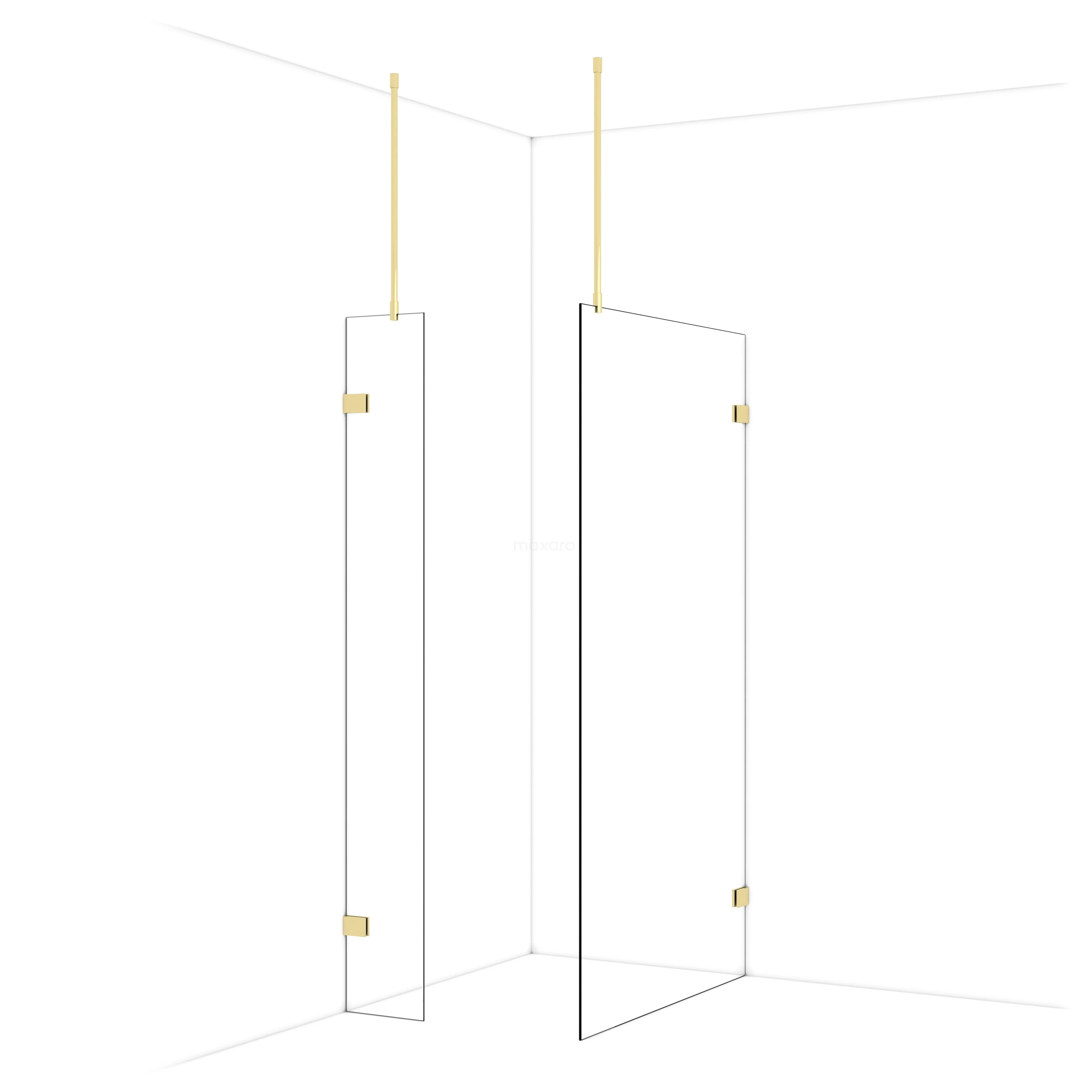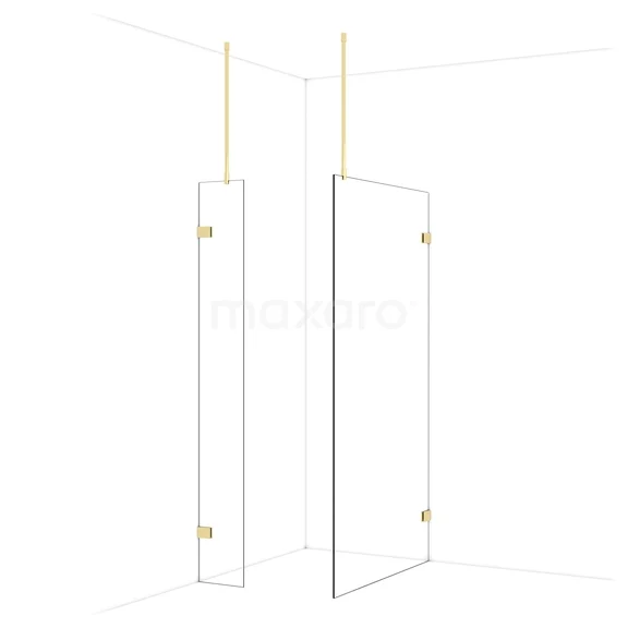 Diamond Walk-in shower | 110x30 cm Shiny light gold Clear glass 2 fixed walls