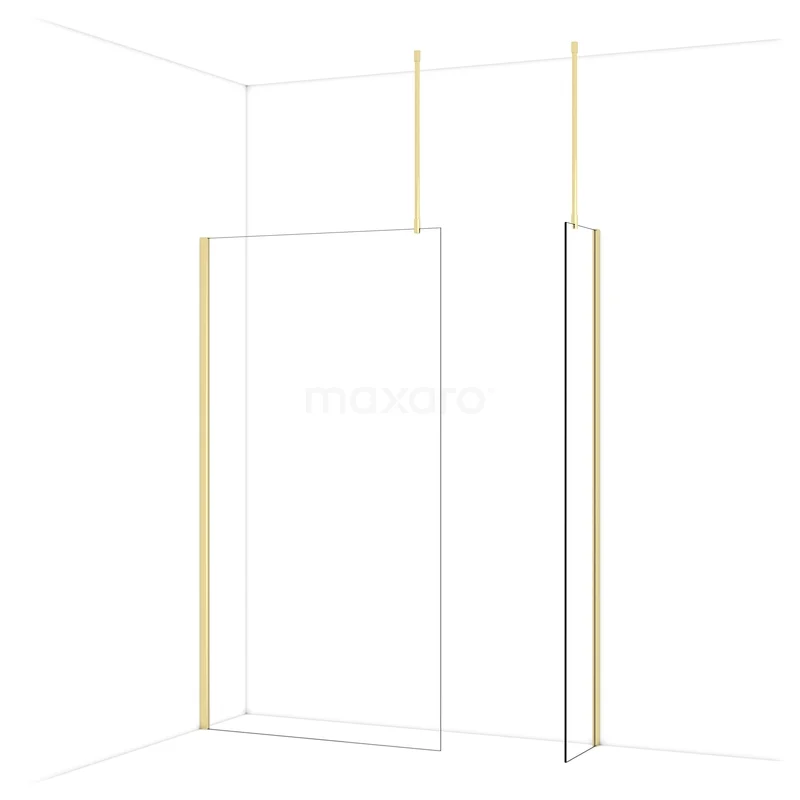 Diamond Walk-in shower | 110x40 cm Shiny light gold Clear glass 2 fixed walls
