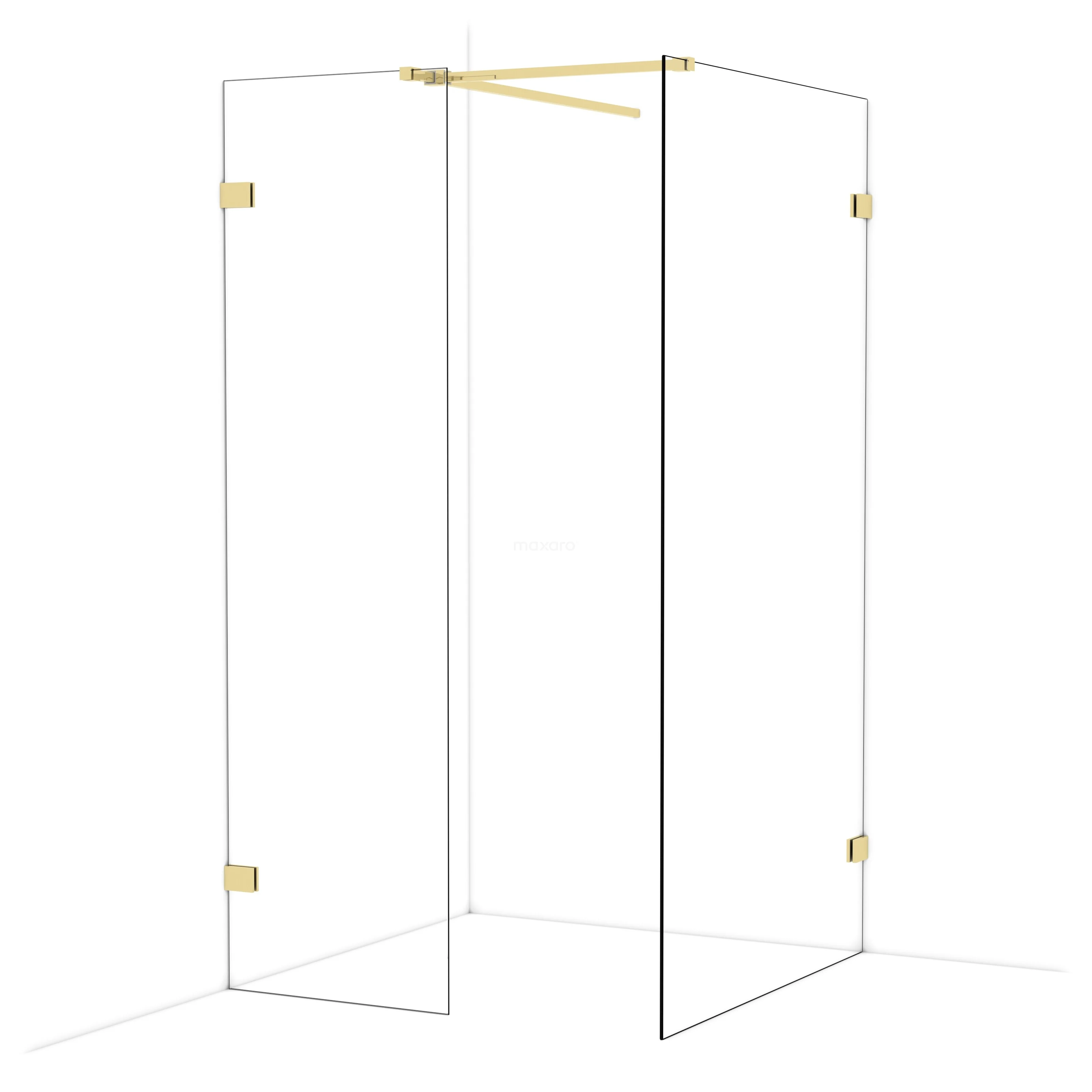 Diamond Walk-in shower | 110x60 cm Glossy light gold Clear glass 2 fixed walls