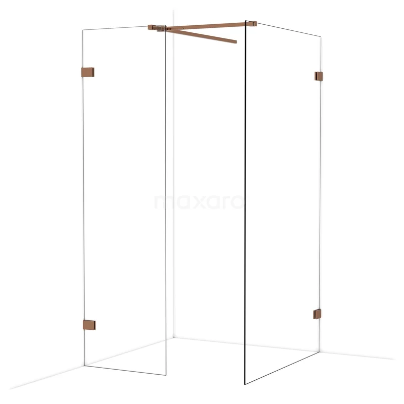 Diamond Walk-in shower | 110x60 cm Shiny copper Clear glass 2 fixed walls