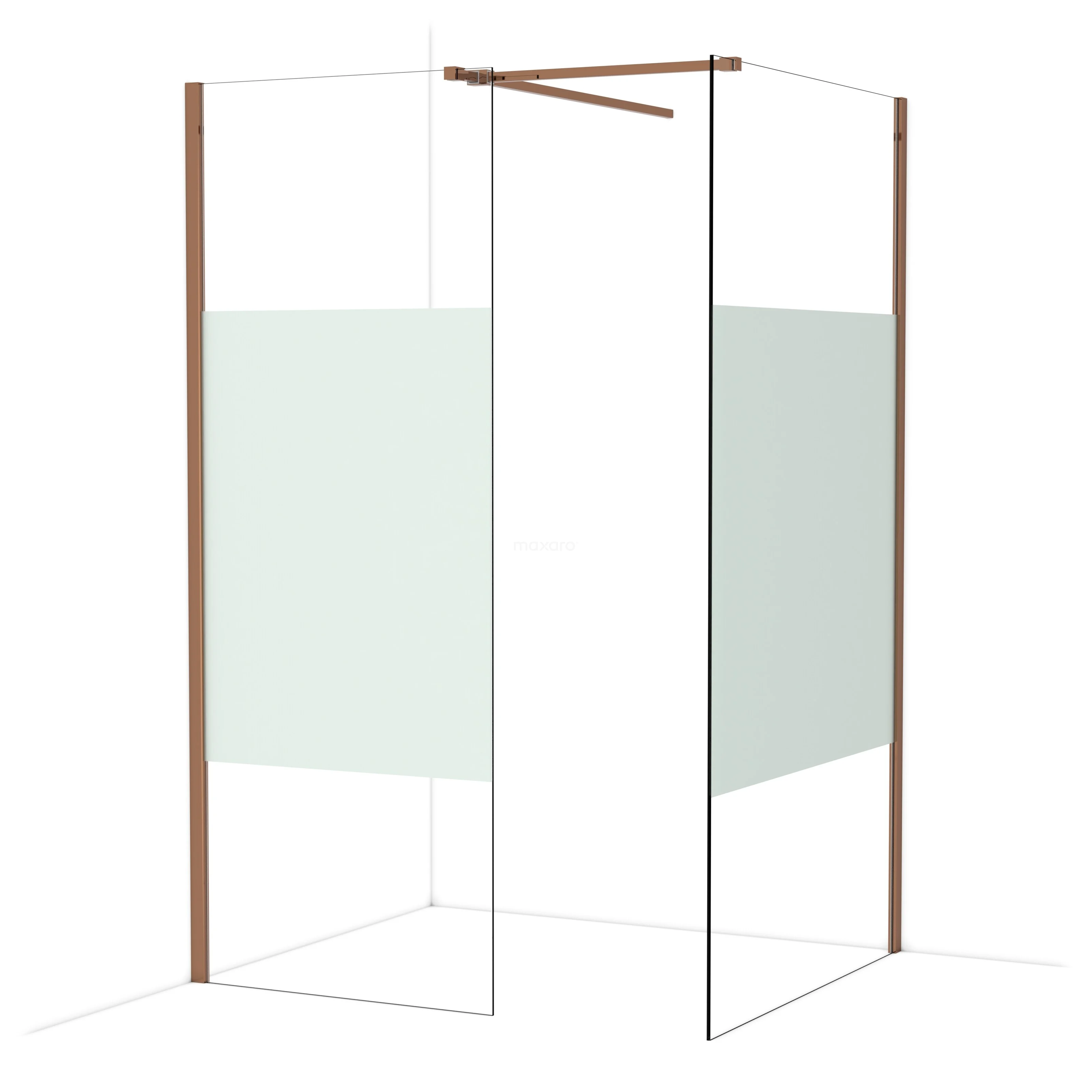 In de stijlvolle Diamond-inloopdouche met een afmeting van 110x80 cm geniet je dagelijks van heerlijke douchesessies. Dit exemplaar heeft een opvallend design van glanzend koper en is voorzien van helder glas met matte strook voor meer privacy.