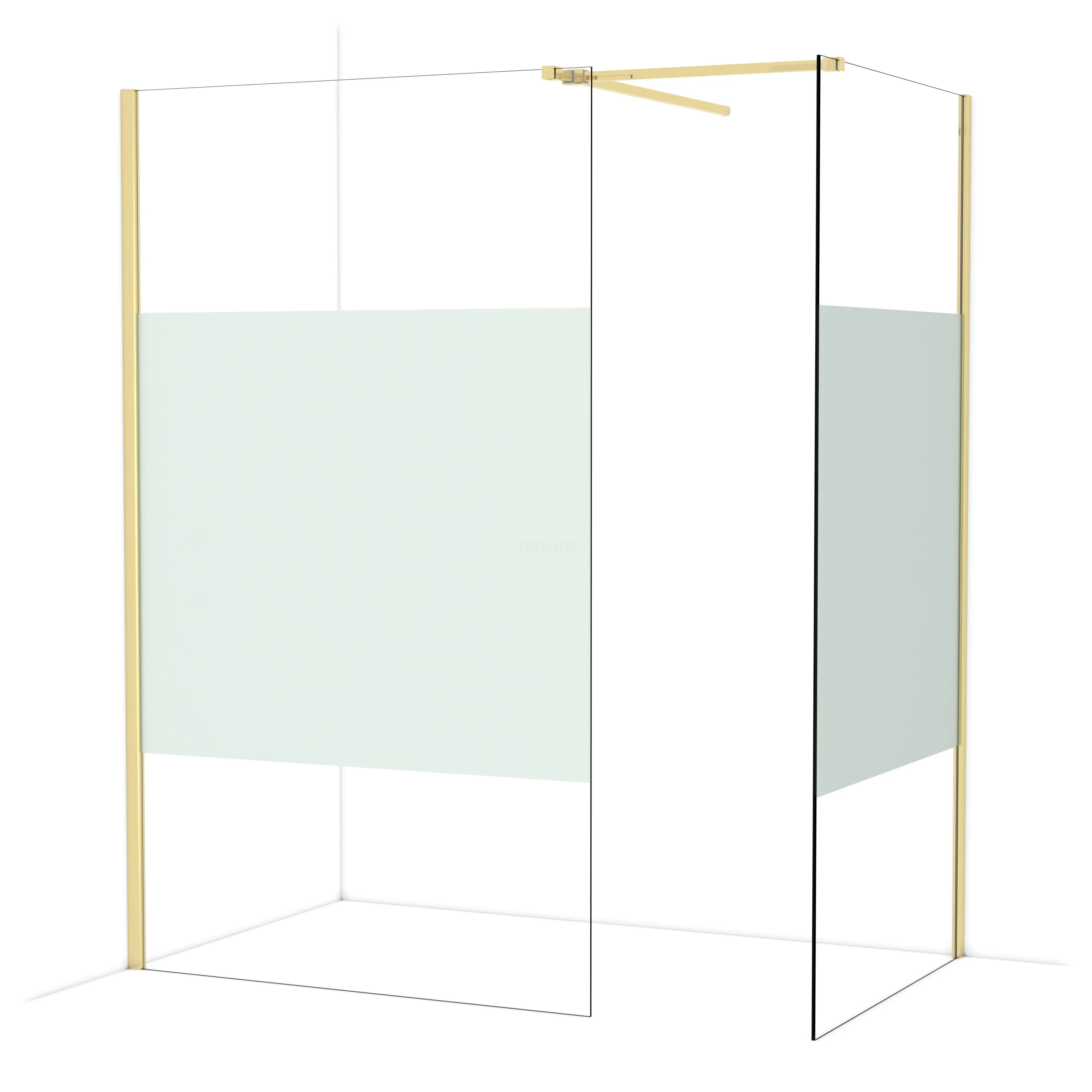 Diamond Walk-in shower | 120x100 cm Shiny light gold Clear with matt strip 2 fixed walls