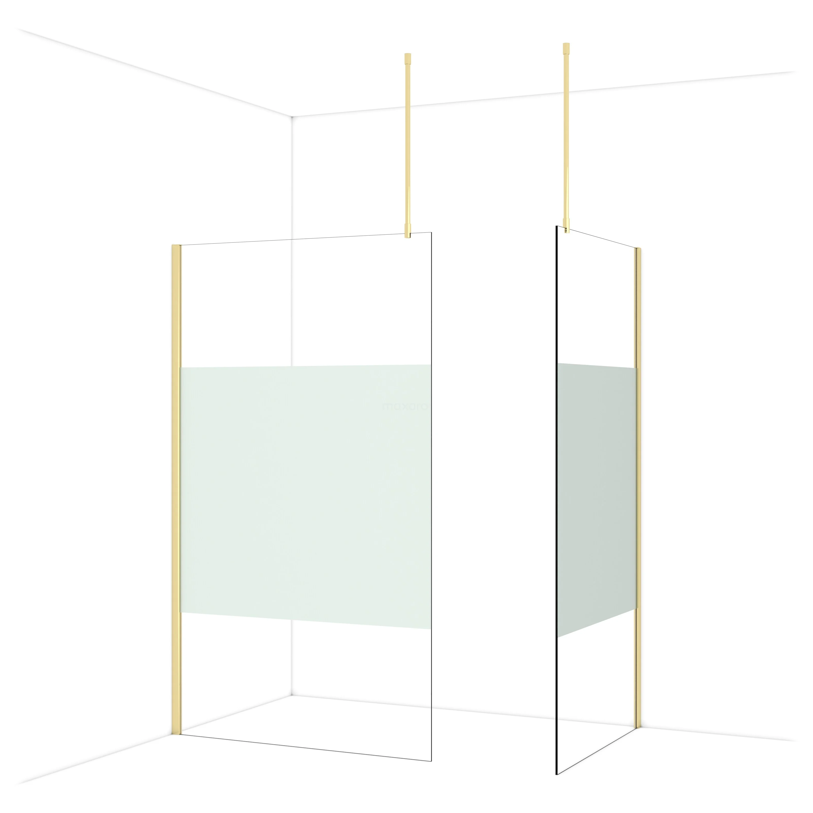 Diamond Walk-in shower | 120x100 cm Shiny light gold Clear with matt strip 2 fixed walls
