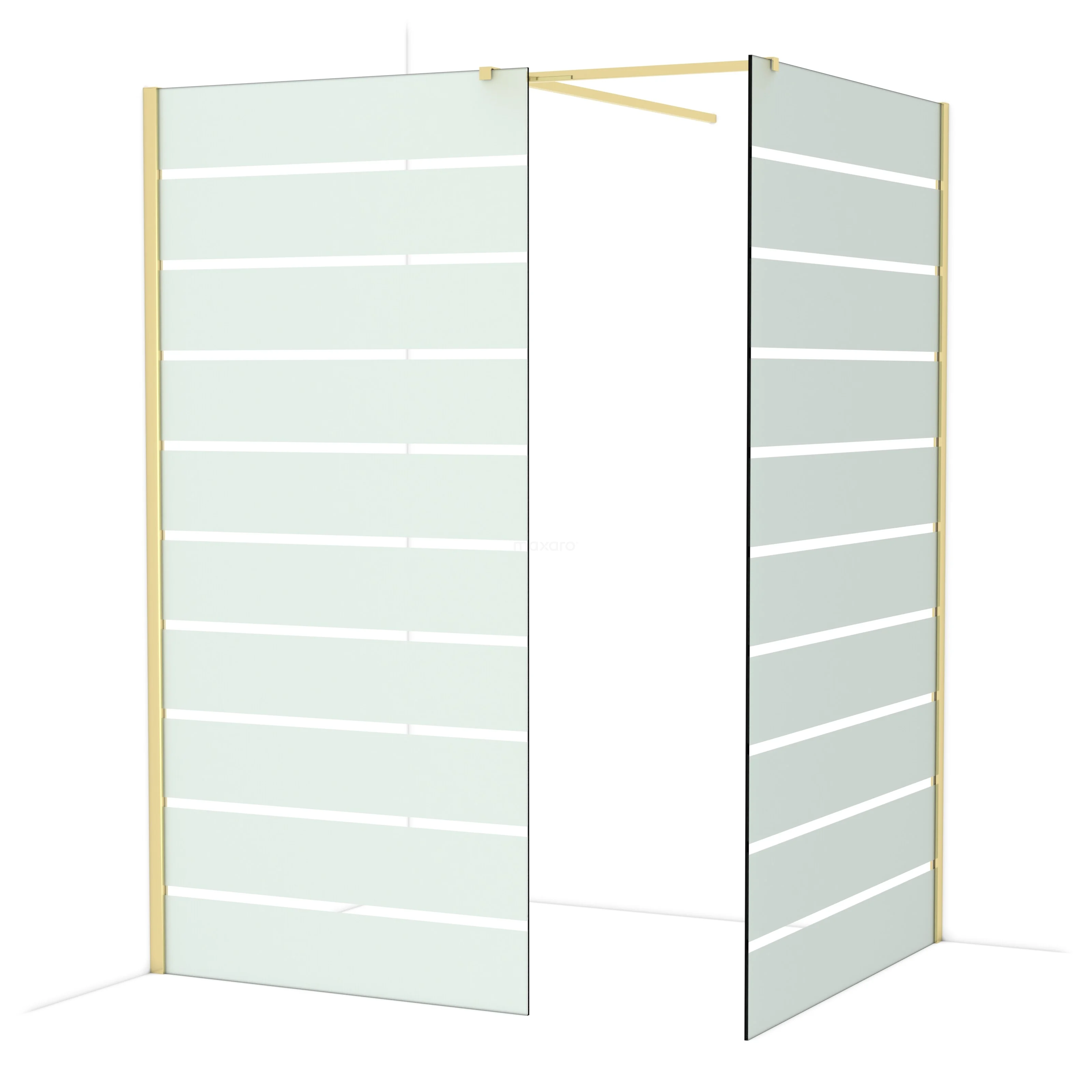 Diamond Walk-in shower | 120x100 cm Shiny light gold Clear with matt stripes 2 fixed walls