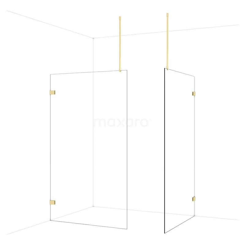Diamond Walk-in shower | 120x120 cm Shiny light gold Clear glass 2 fixed walls