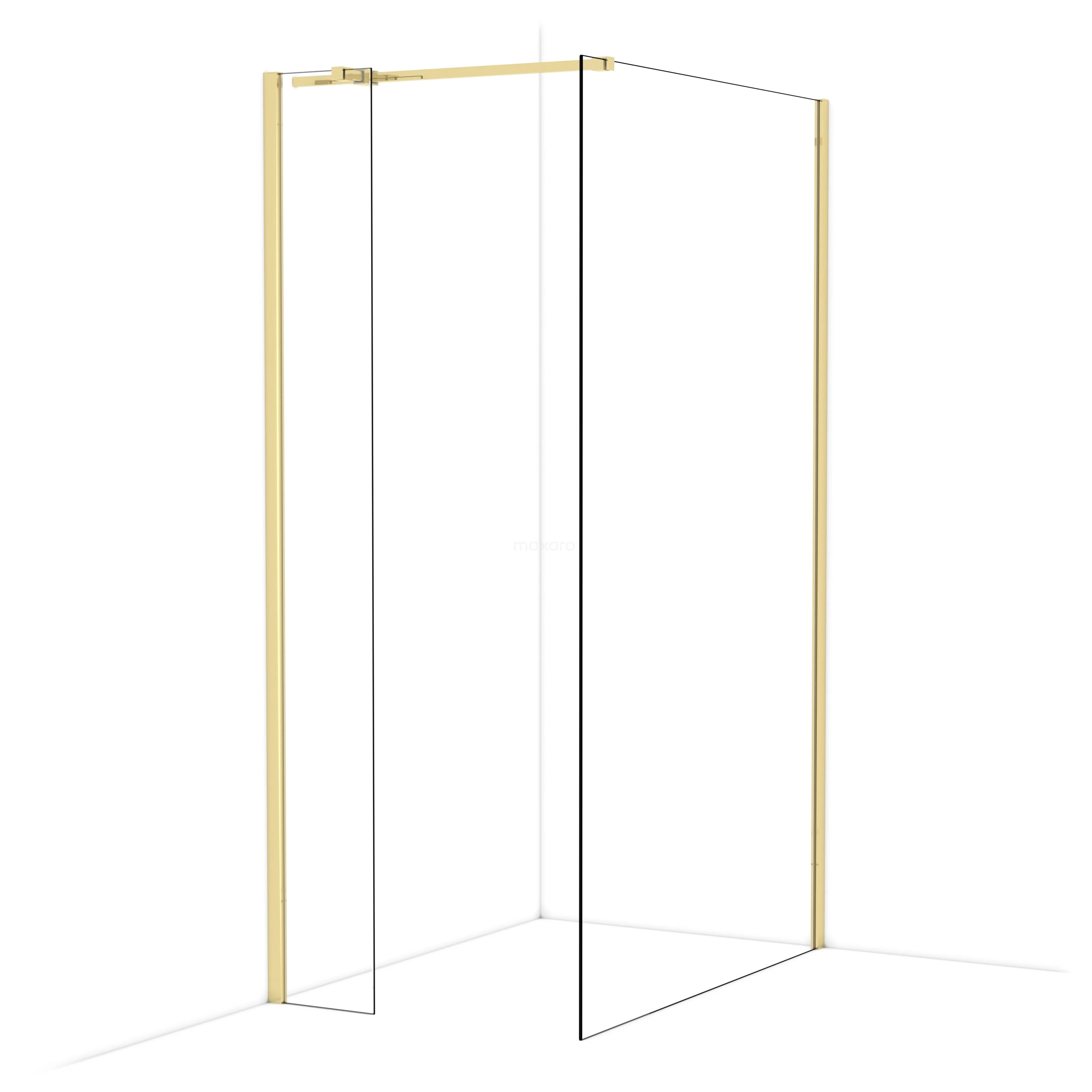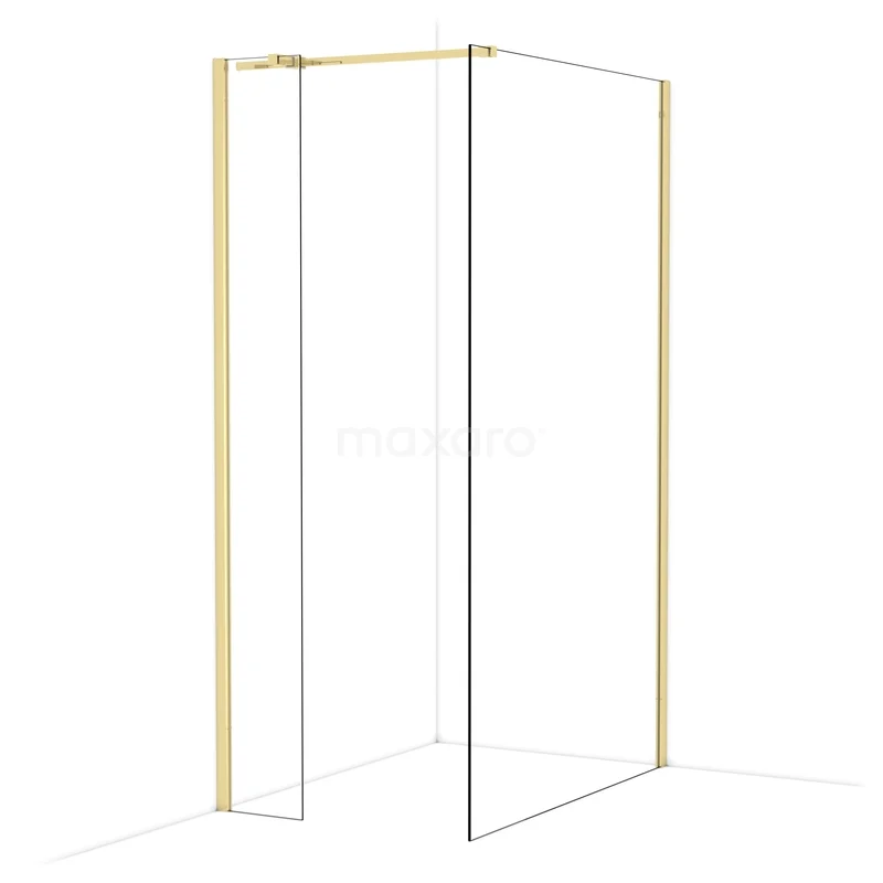 Diamond Walk-in shower | 120x30 cm Shiny light gold Clear glass 2 fixed walls