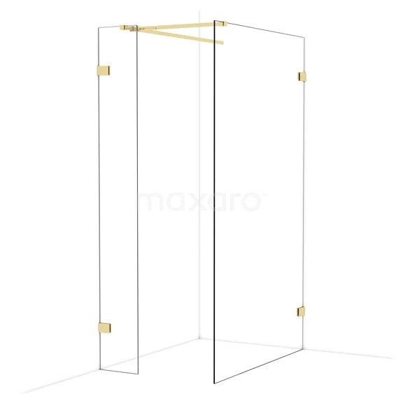 Diamond Walk-in shower | 120x30 cm Shiny light gold Clear glass 2 fixed walls