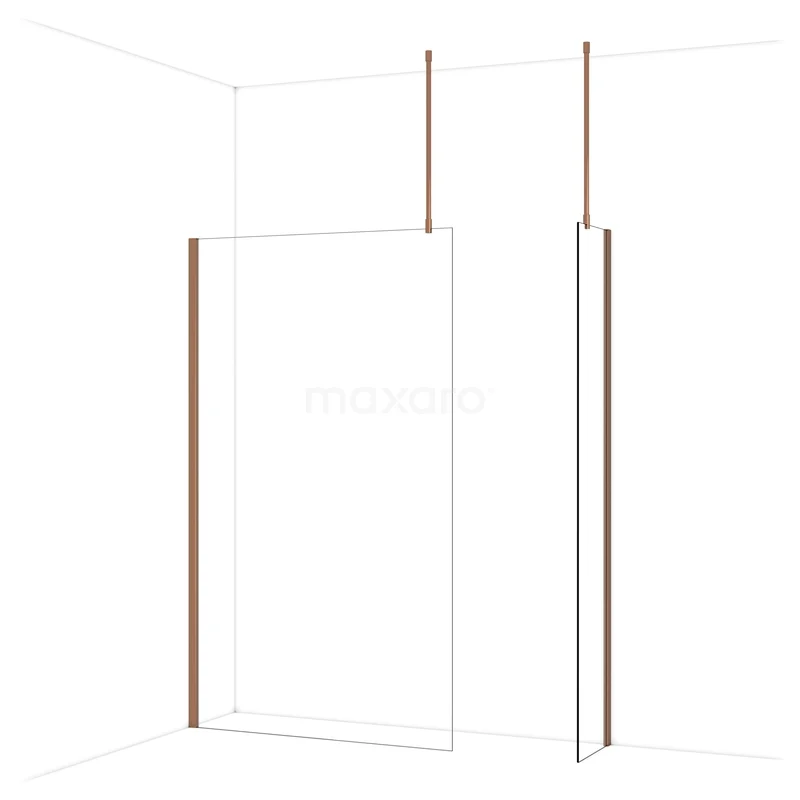 Diamond Walk-in shower | 120x40 cm Glanzend koper Clear glass 2 fixed walls