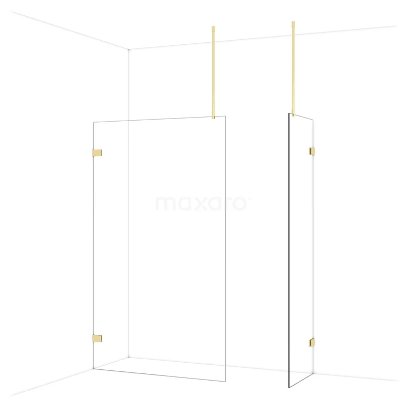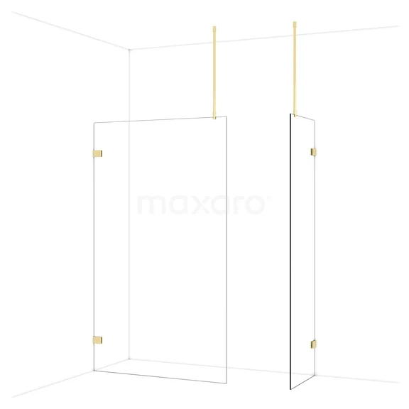 Diamond Walk-in shower | 120x60 cm Shiny light gold Clear glass 2 fixed walls