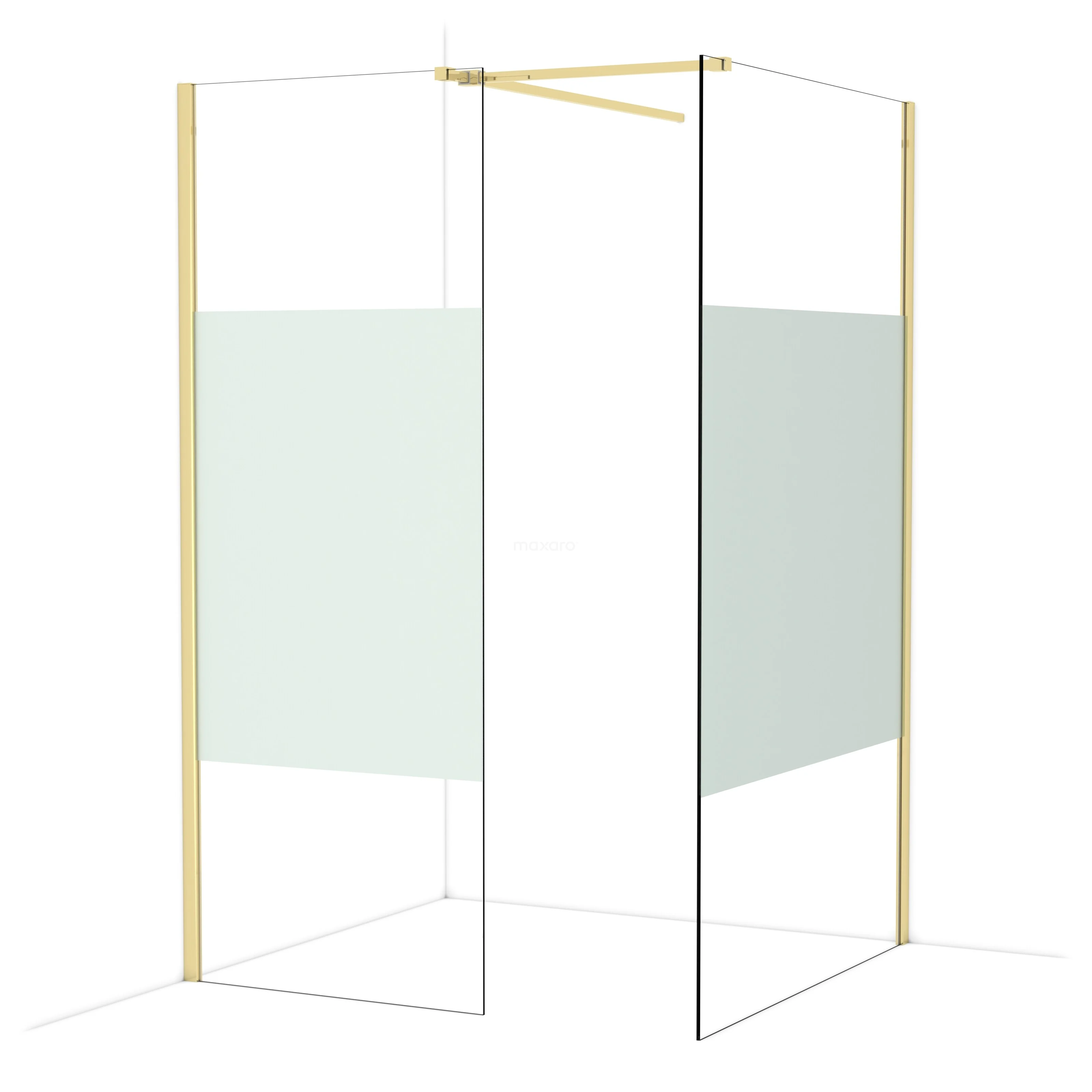 In de stijlvolle Diamond-inloopdouche met een afmeting van 120x80 cm geniet je dagelijks van heerlijke douchesessies. Dit exemplaar heeft een verfijnd en luxe design van glanzend lichtgoud en is voorzien van helder glas met matte strook voor meer privacy.