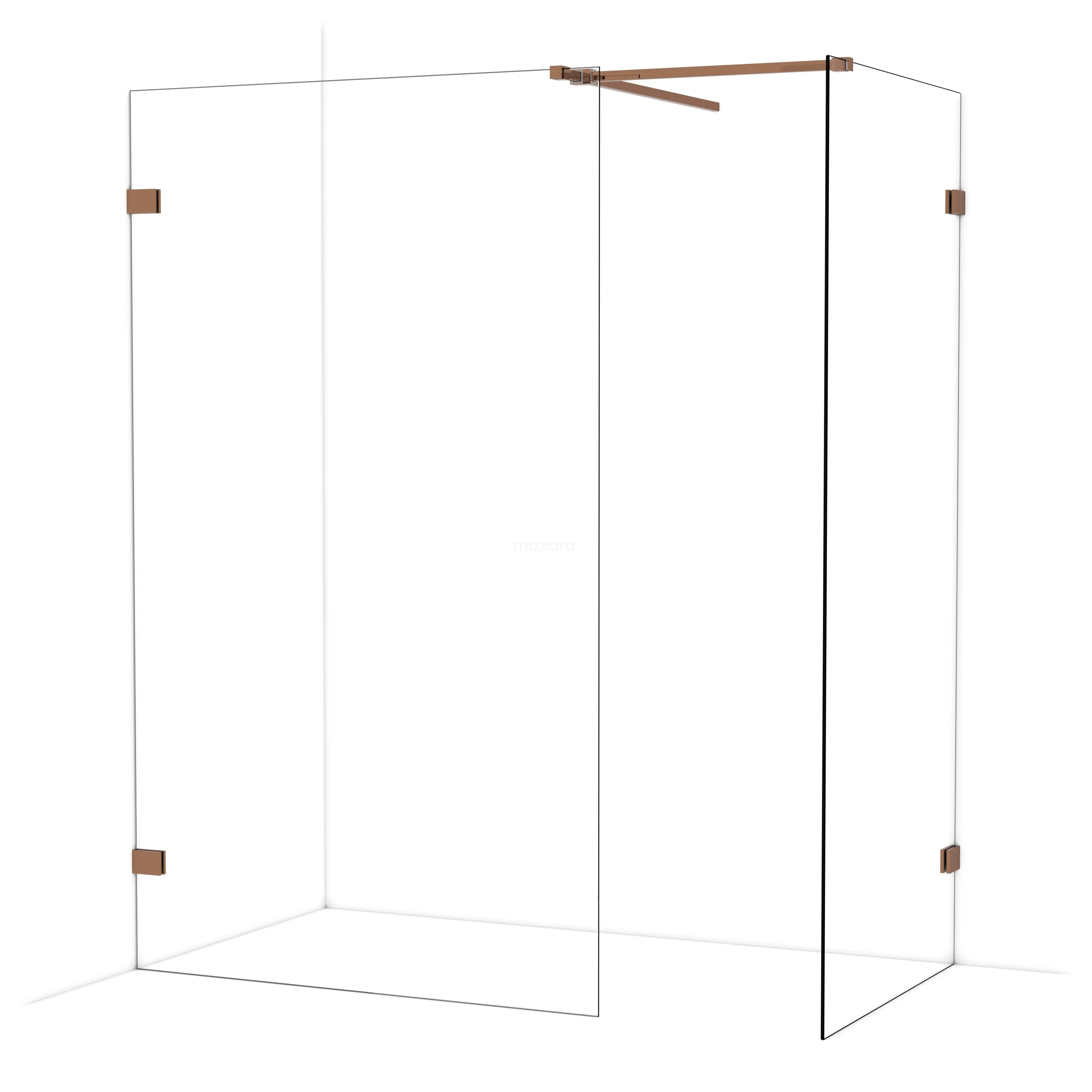 Diamond Walk-in shower | 120x90 cm Shiny copper Clear glass 2 fixed walls