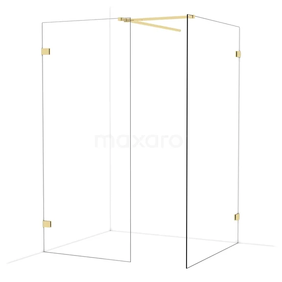 Diamond Walk-in shower | 120x90 cm Shiny light gold Clear glass 2 fixed walls