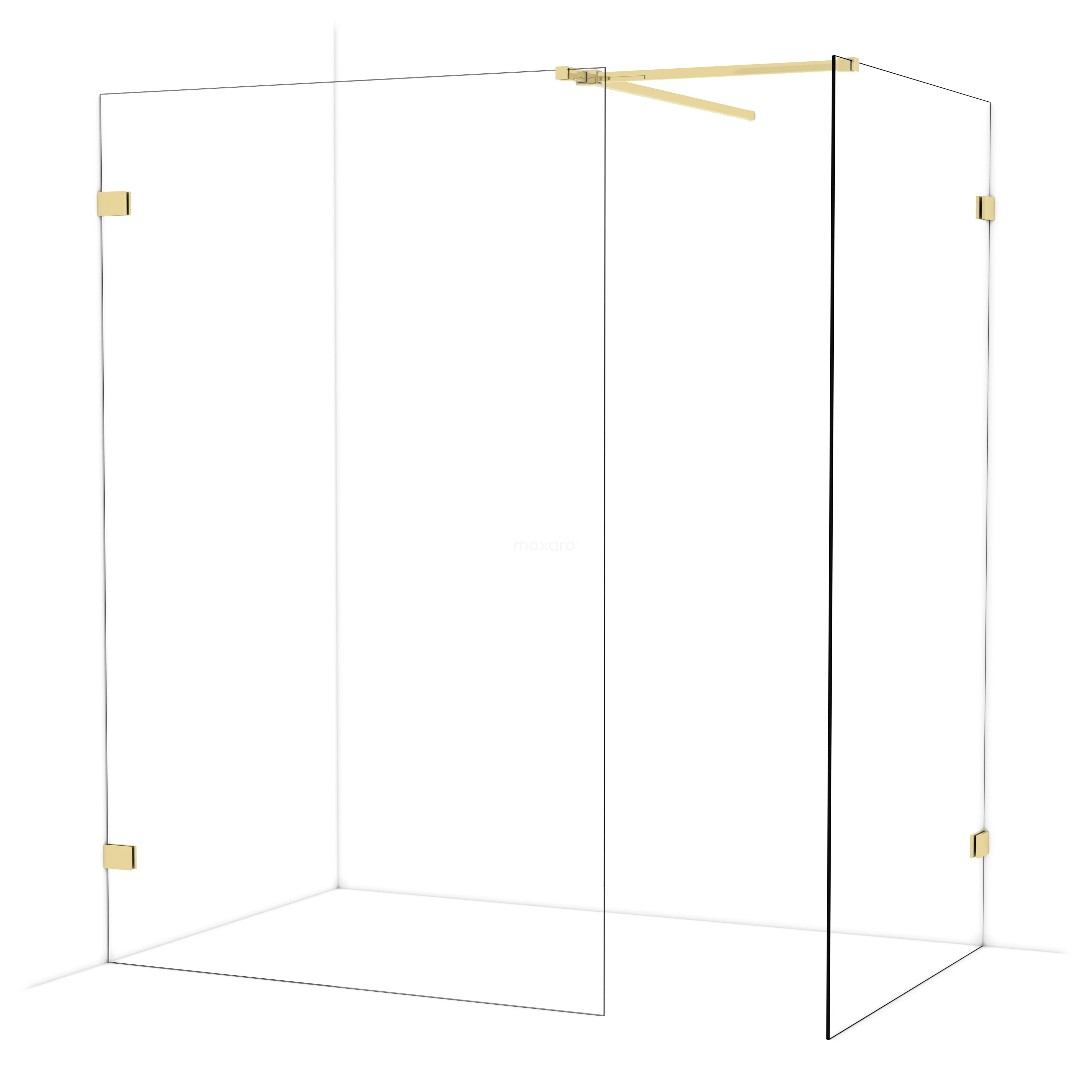 Diamond Walk-in shower | 130x110 cm Shiny light gold Clear glass 2 fixed walls