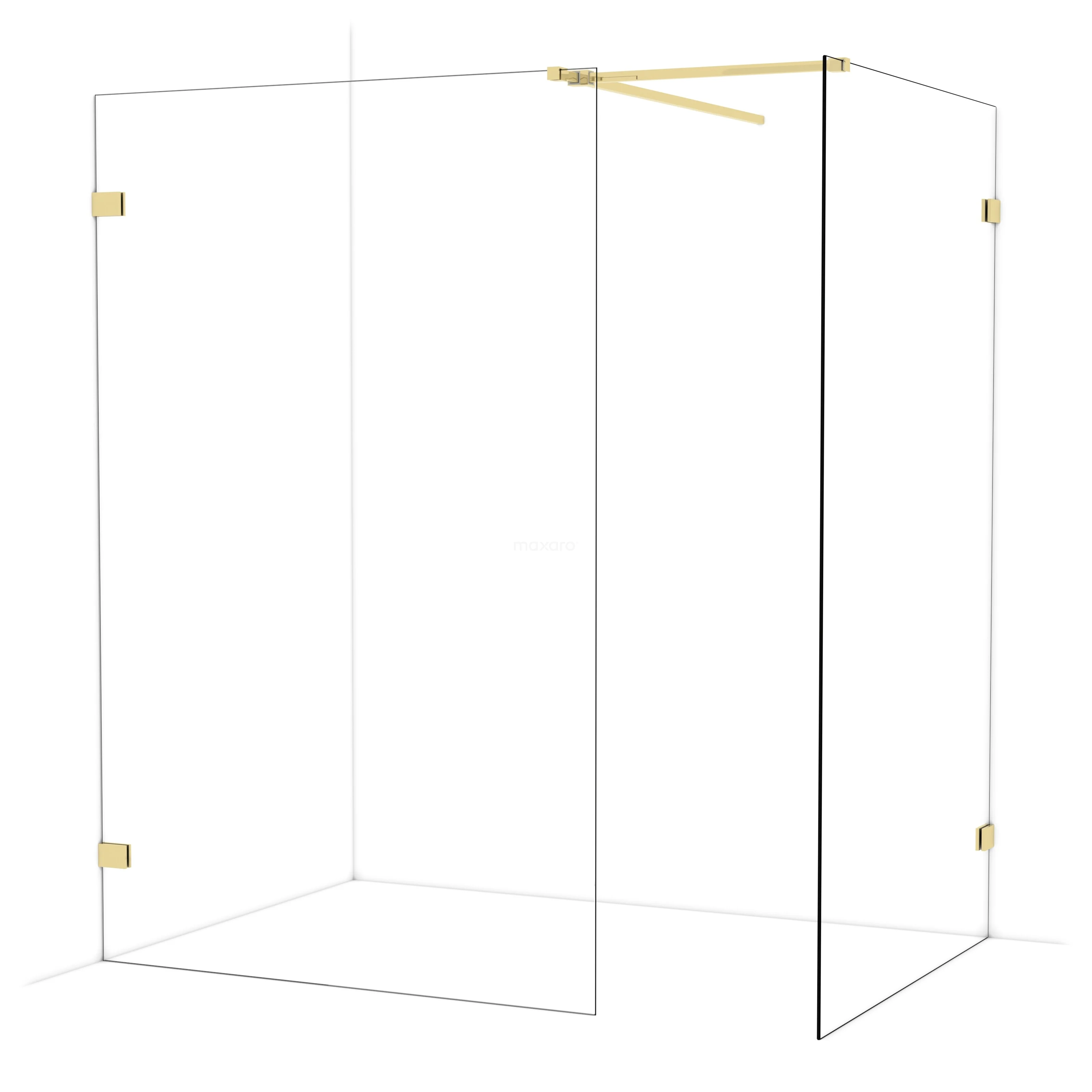 Diamond Walk-in shower | 130x120 cm Shiny light gold Clear glass 2 fixed walls