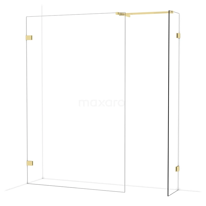 Diamond Walk-in shower | 130x40 cm Shiny light gold Clear glass 2 fixed walls