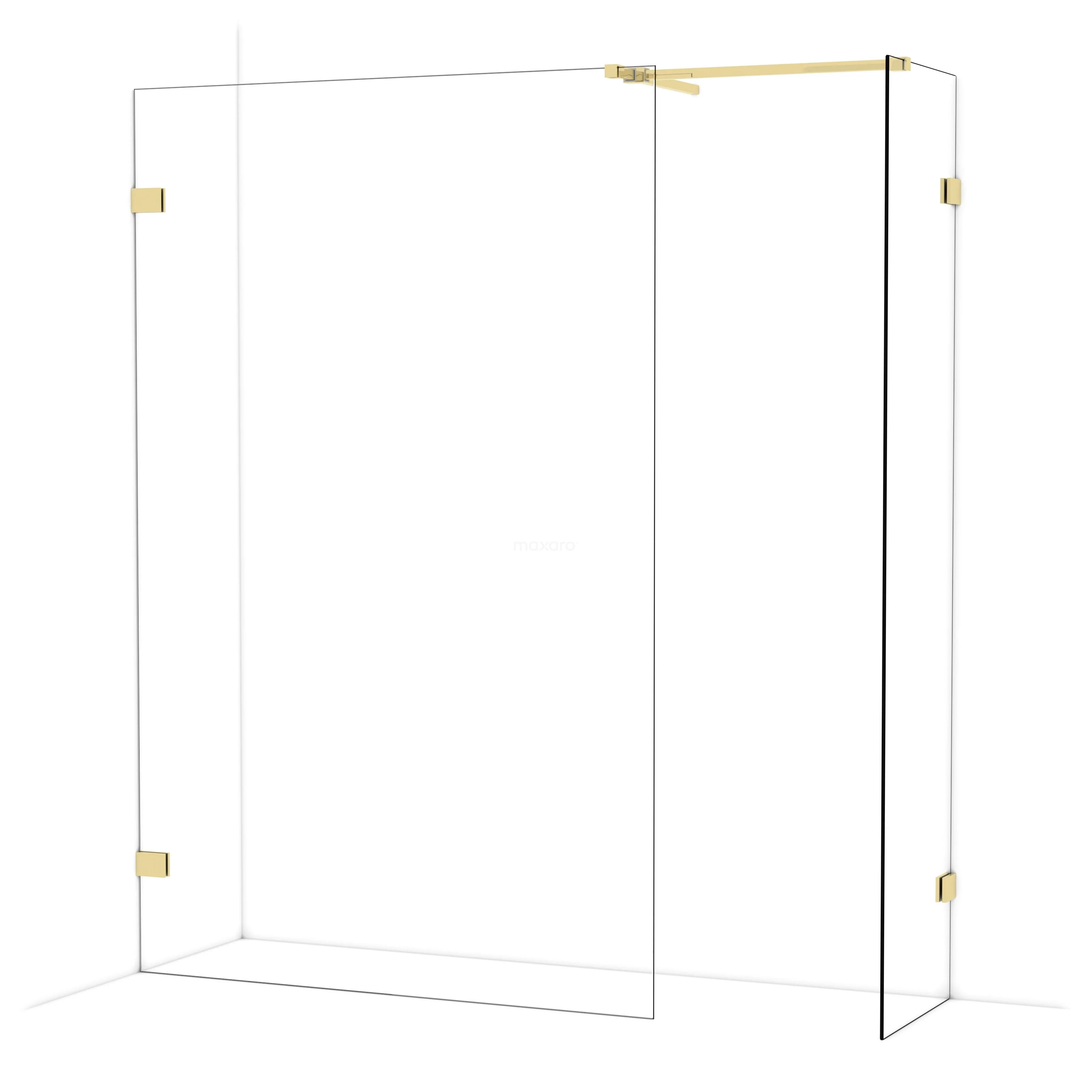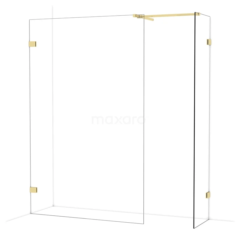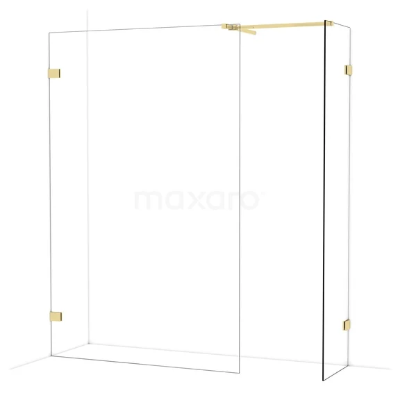 Diamond Walk-in shower | 130x50 cm Shiny light gold Clear glass 2 fixed walls