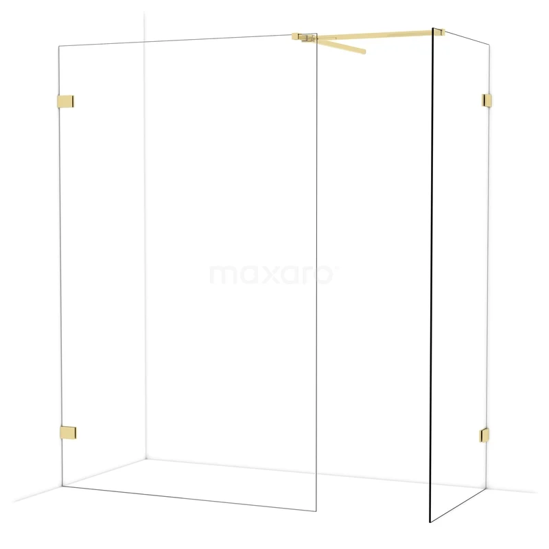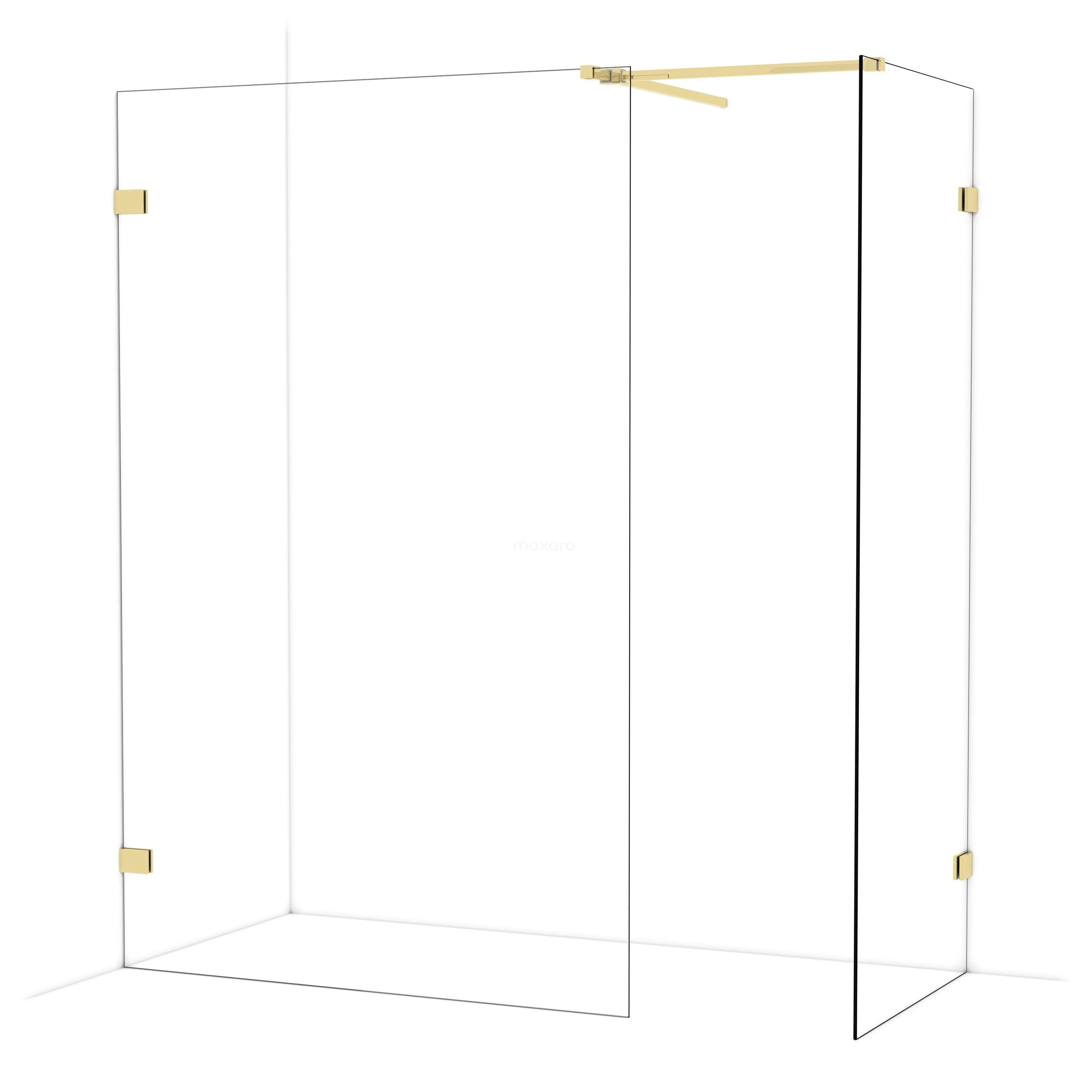 Diamond Walk-in shower | 130x80 cm Shiny light gold Clear glass 2 fixed walls