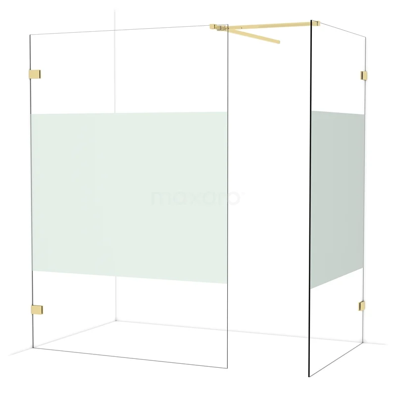 In de stijlvolle Diamond-inloopdouche met een afmeting van 140x110 cm geniet je dagelijks van heerlijke douchesessies. Dit exemplaar heeft een verfijnd en luxe design van glanzend lichtgoud en is voorzien van helder glas met matte strook voor meer privacy.