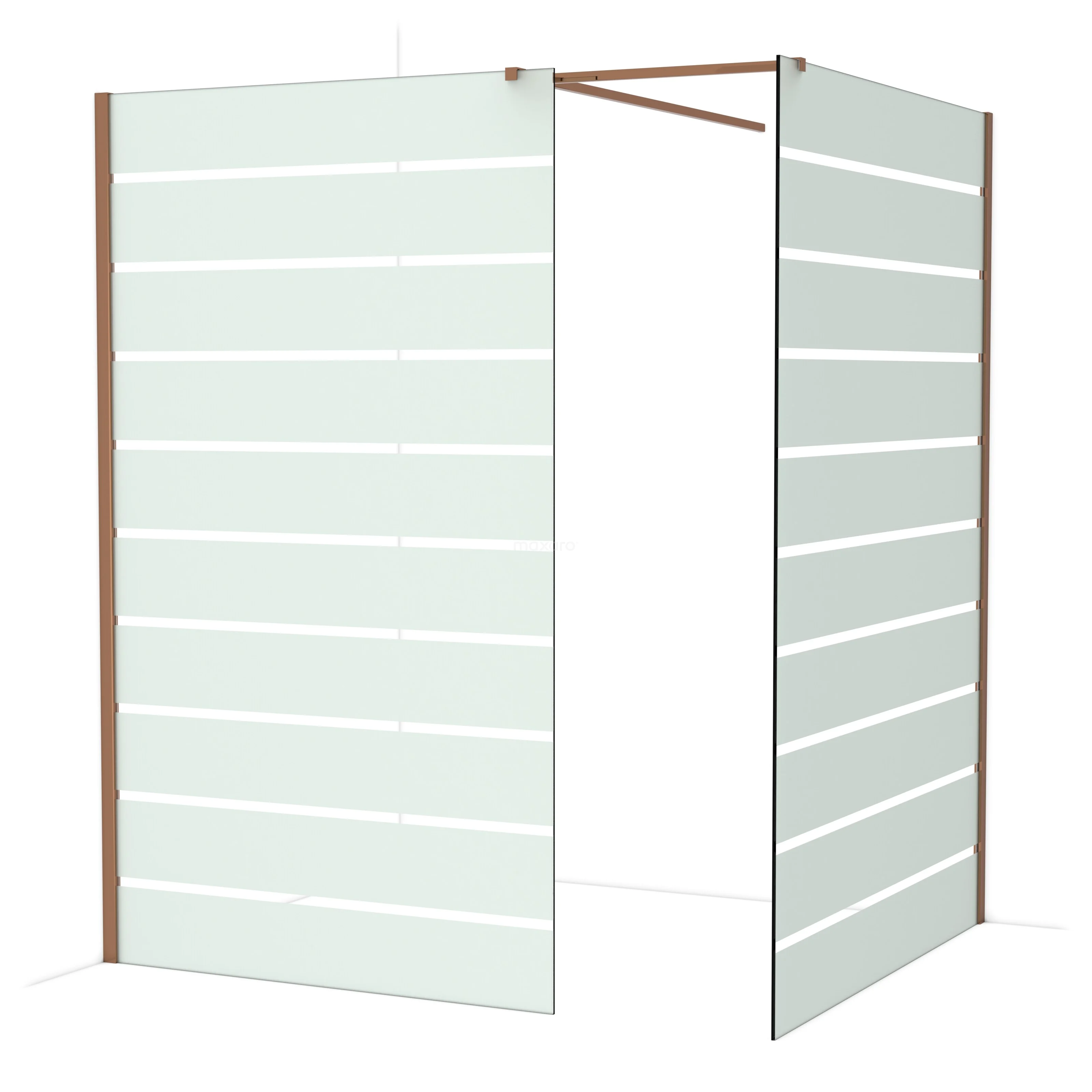 In de stijlvolle Diamond-inloopdouche met een afmeting van 140x120 cm geniet je dagelijks van heerlijke douchesessies. Dit exemplaar heeft een opvallend design van glanzend koper en is voorzien van helder glas met matte strepen voor meer privacy.