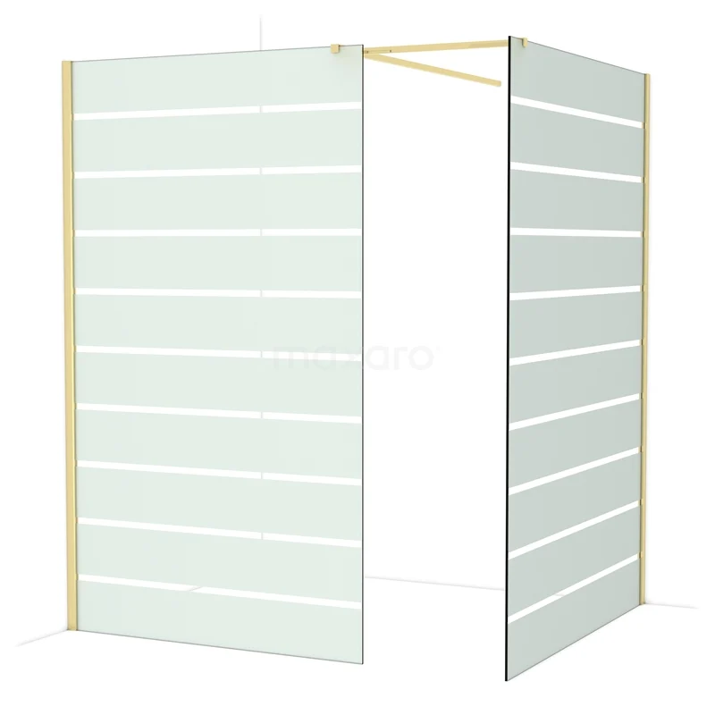 Diamond Walk-in shower | 140x120 cm Shiny light gold Clear with matt stripes 2 fixed walls