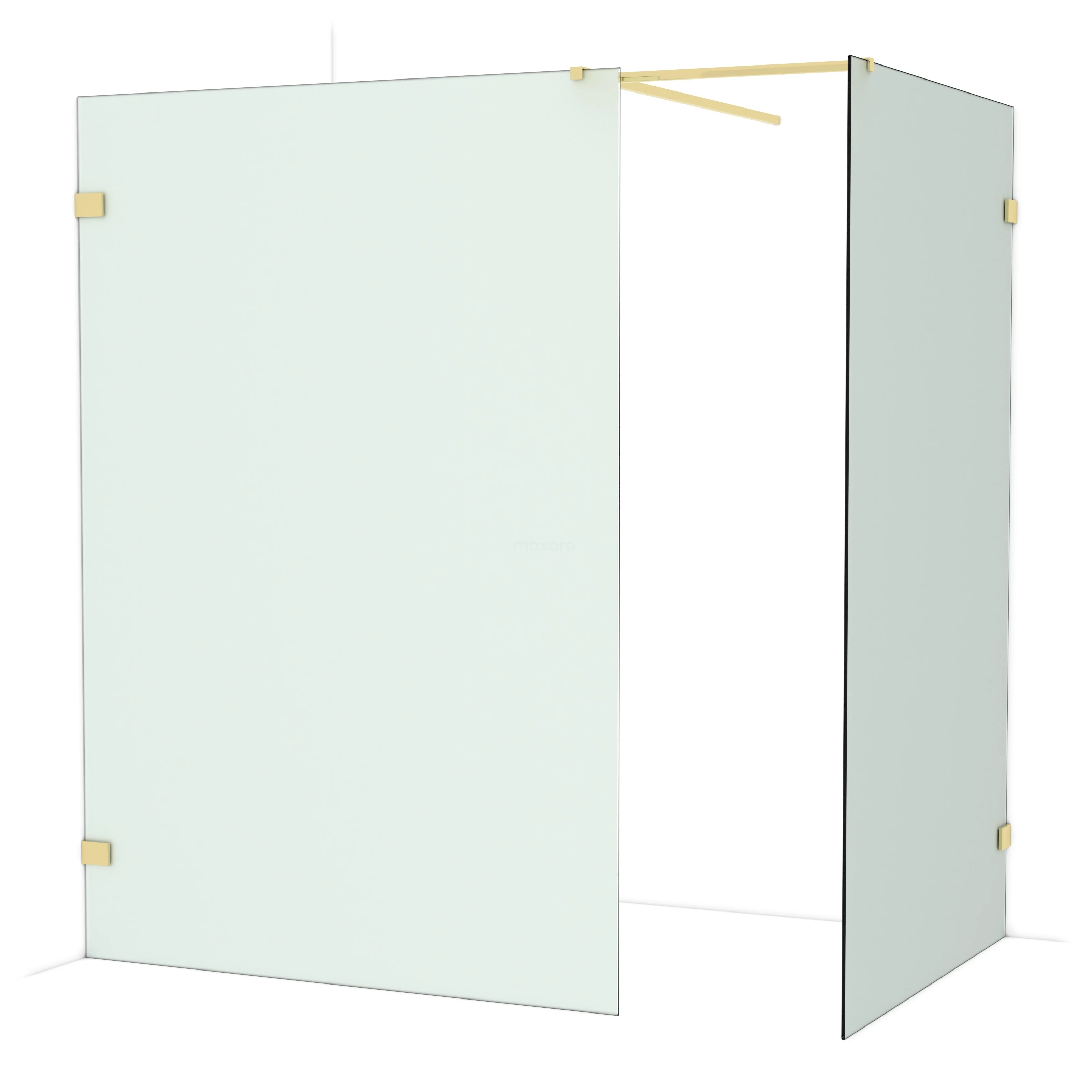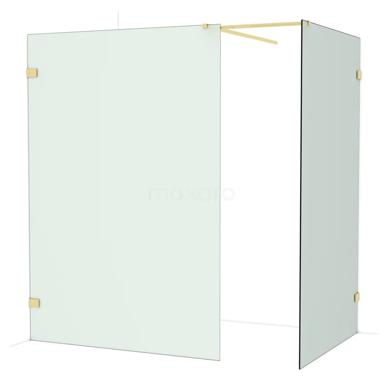 Diamond Walk-in shower | 140x120 cm Shiny light gold Frosted glass 2 fixed walls