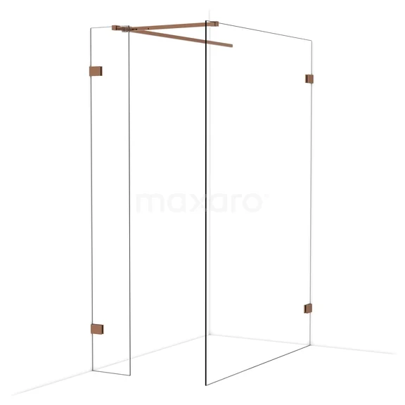 Diamond Walk-in shower | 140x30 cm Shiny copper Clear glass 2 fixed walls