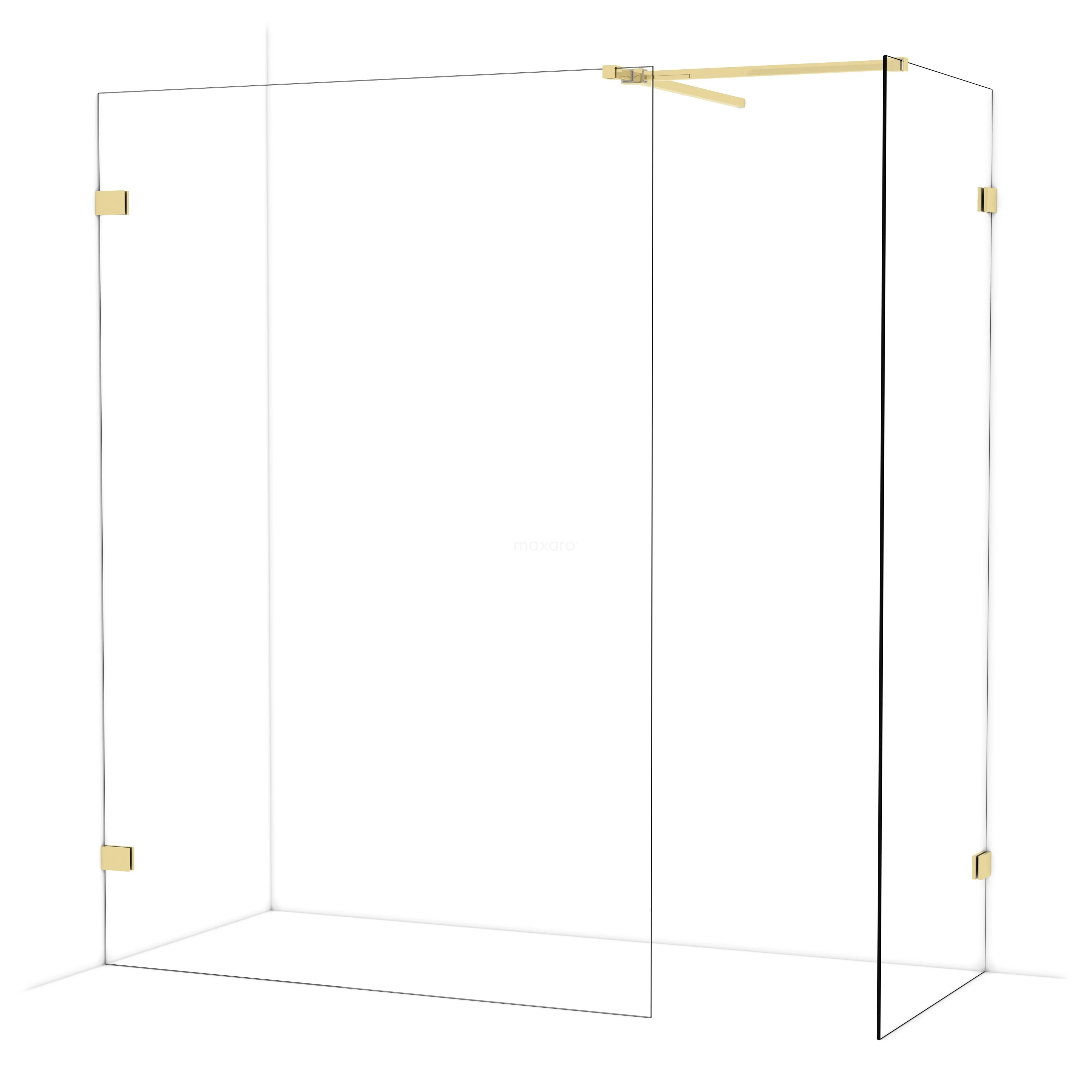 Diamond Walk-in shower | 140x80 cm Shiny light gold Clear glass 2 fixed walls
