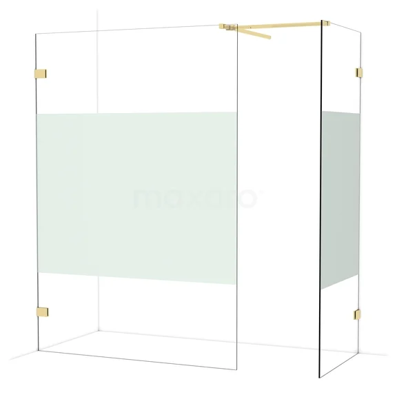 Diamond Walk-in shower | 140x80 cm Shiny light gold Clear with matt strip 2 fixed walls