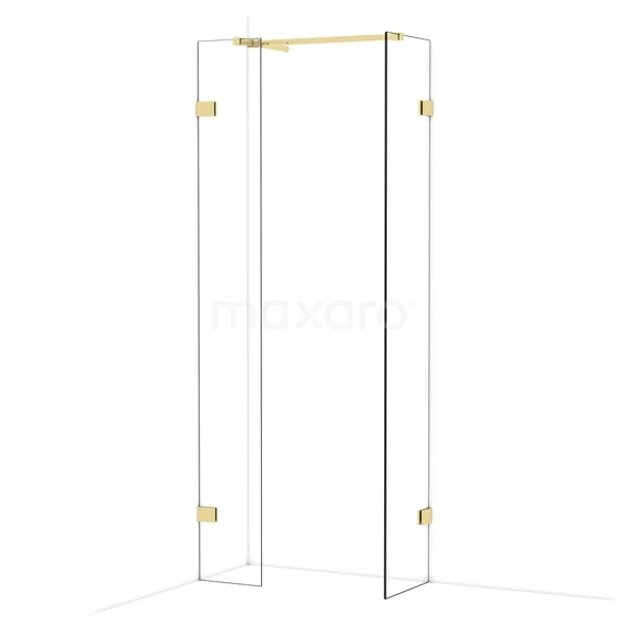 Diamond Walk-in shower | 40x30 cm Shiny light gold Clear glass 2 fixed walls