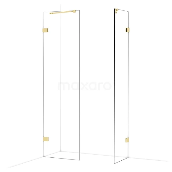 Diamond Walk-in shower | 60x50 cm Shiny light gold Clear glass 2 fixed walls