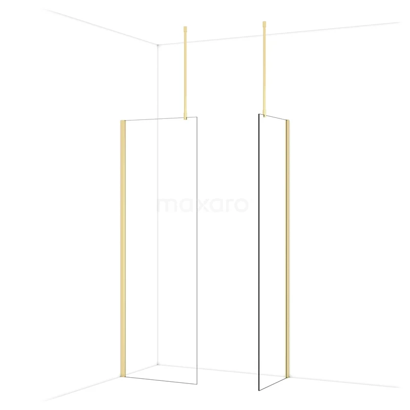 Diamond Walk-in shower | 70x60 cm Shiny light gold Clear glass 2 fixed walls