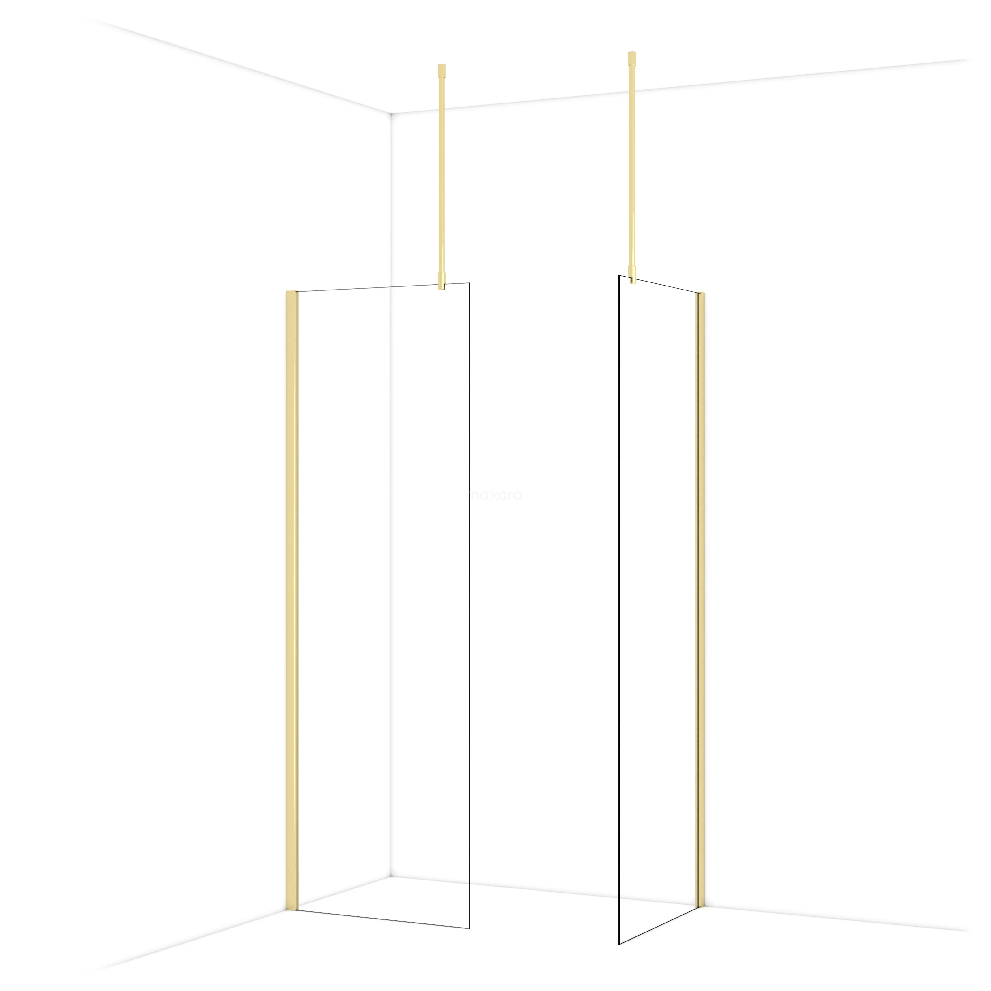 Diamond Walk-in shower | 70x70 cm Shiny light gold Clear glass 2 fixed walls