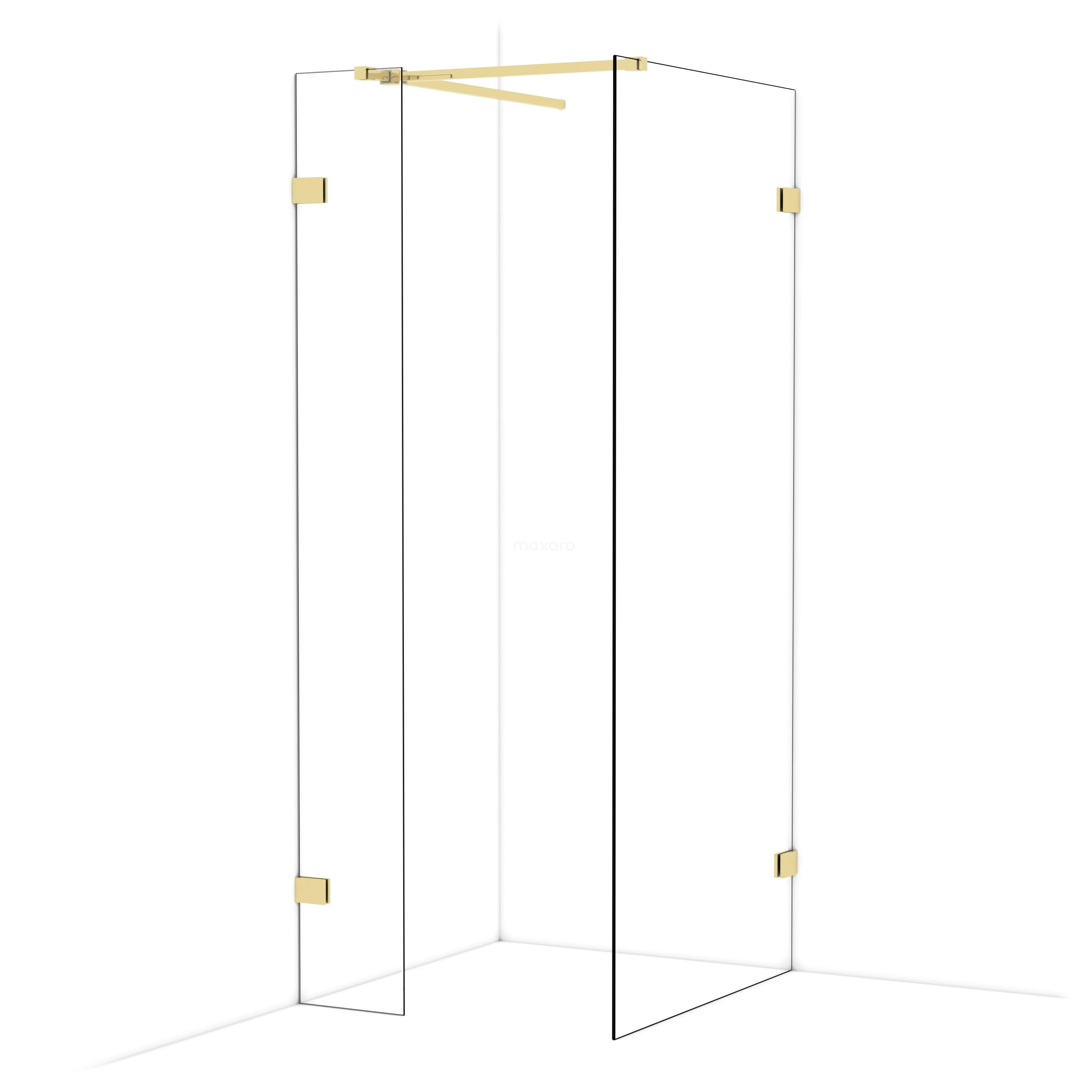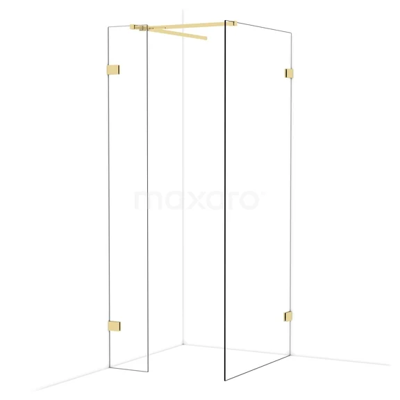 Diamond Walk-in shower | 90x30 cm Shiny light gold Clear glass 2 fixed walls