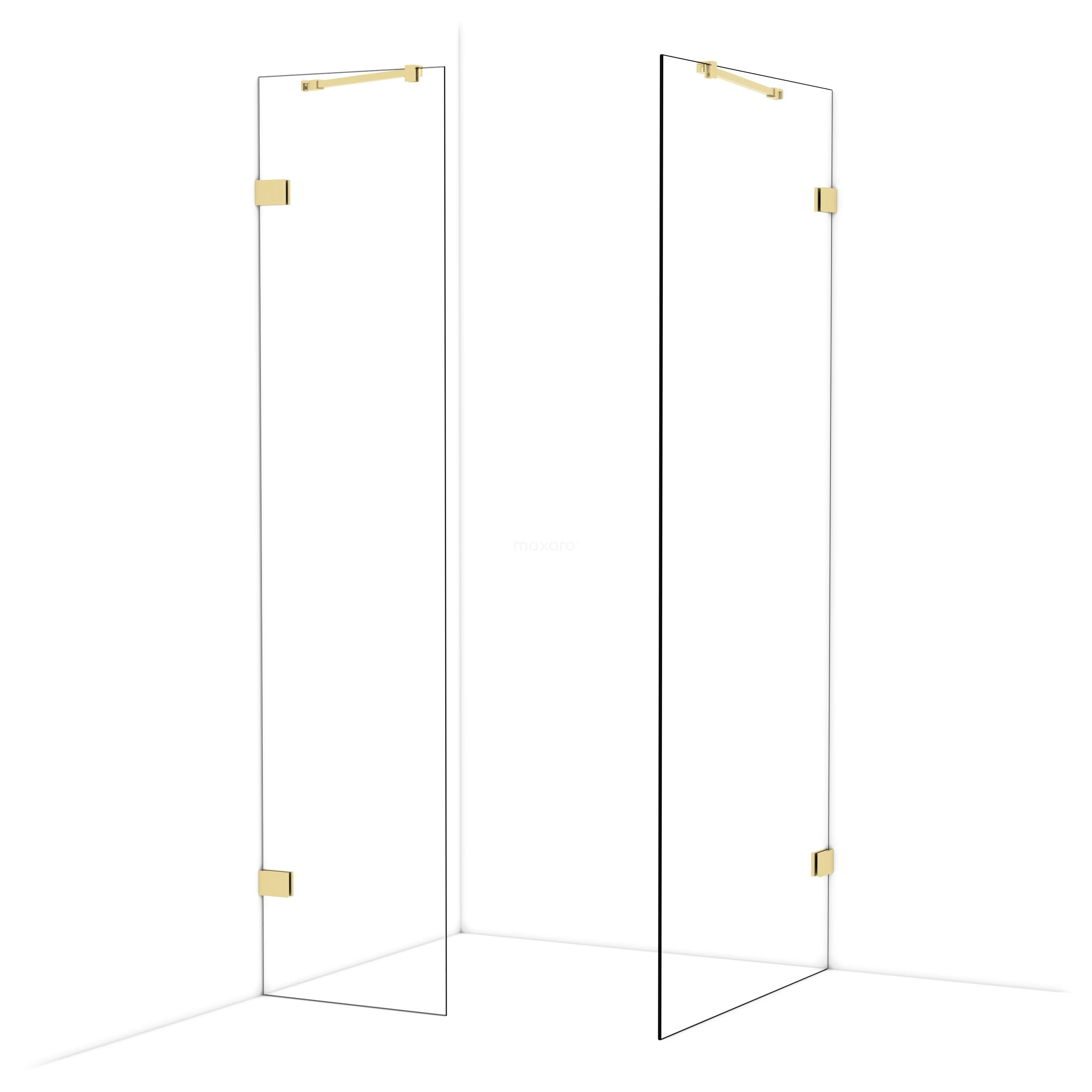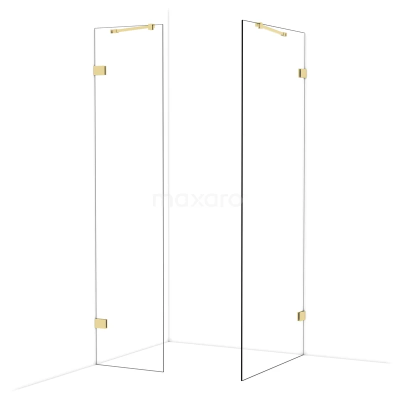 Diamond Walk-in shower | 90x50 cm Shiny light gold Clear glass 2 fixed walls