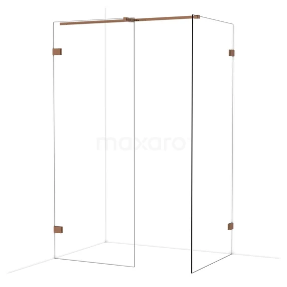 Diamond Walk-in shower | 90x80 cm Shiny copper Clear glass 2 fixed walls