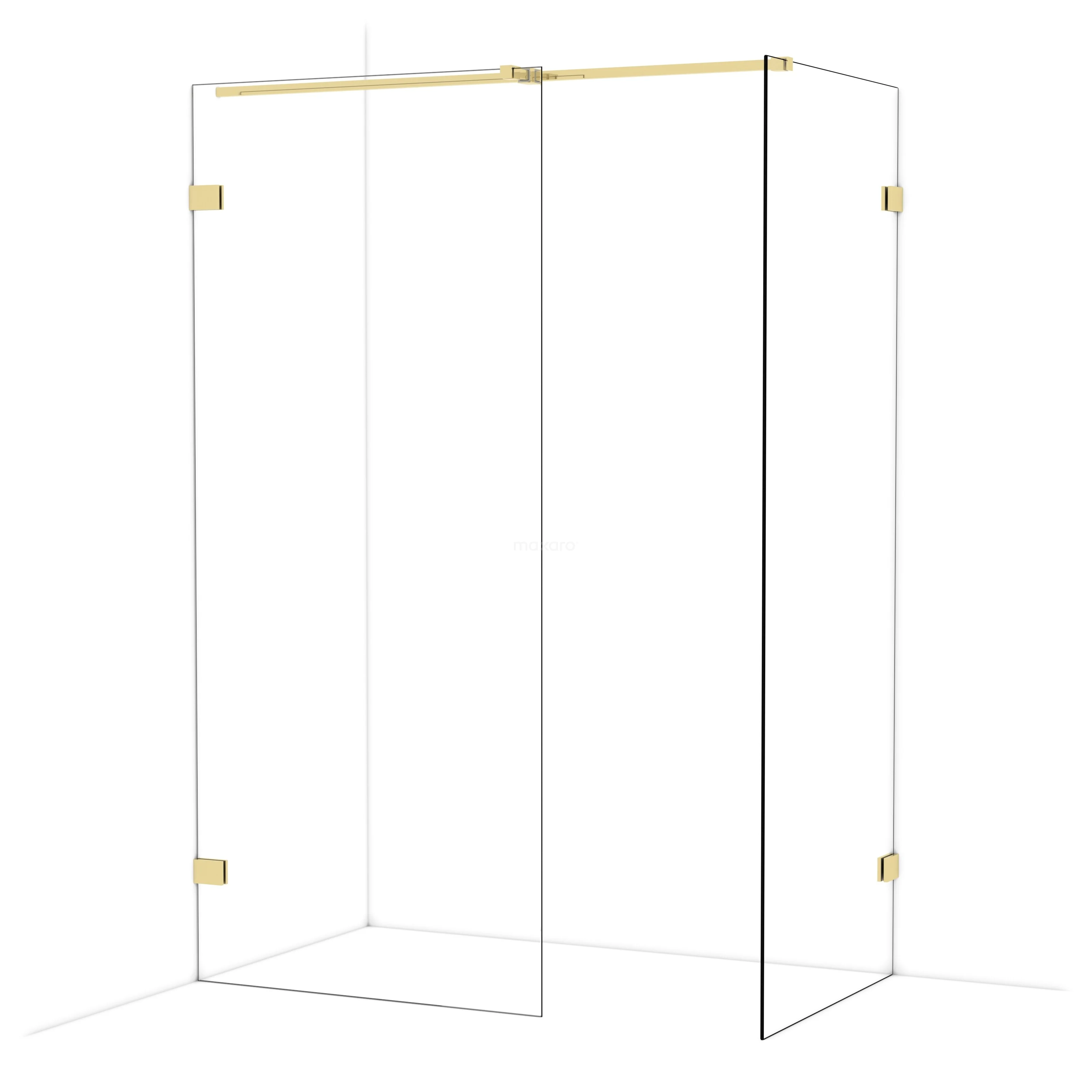 Diamond Walk-in shower | 90x80 cm Shiny light gold Clear glass 2 fixed walls