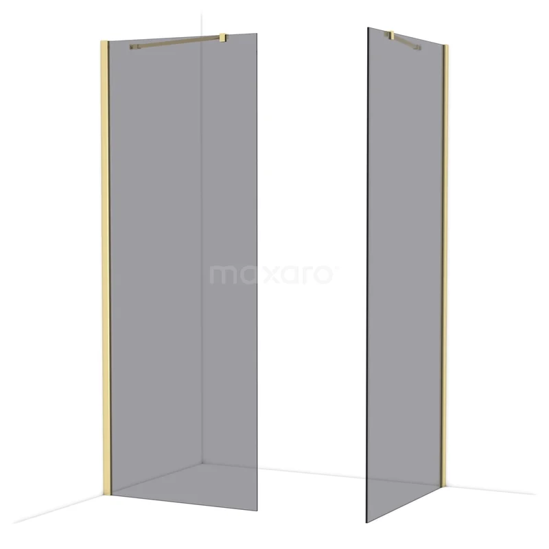 Diamond Walk-in shower | 90x80 cm Shiny light gold Smoke glass 2 fixed walls