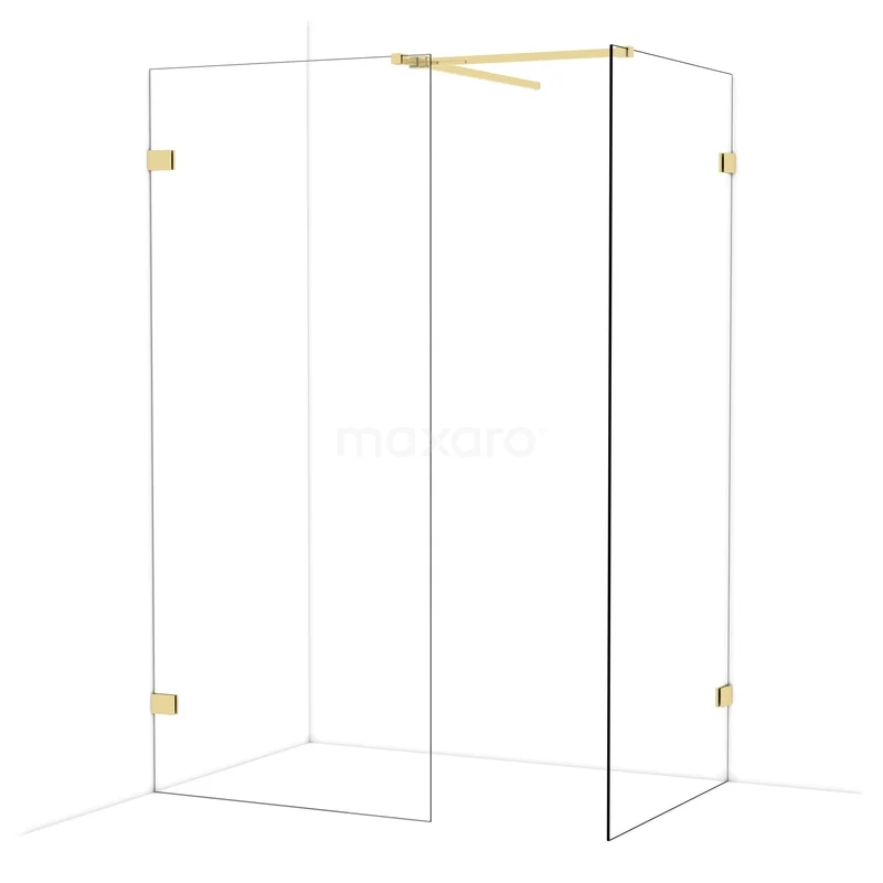 Diamond Walk-in shower | 90x90 cm Shiny light gold Clear glass 2 fixed walls
